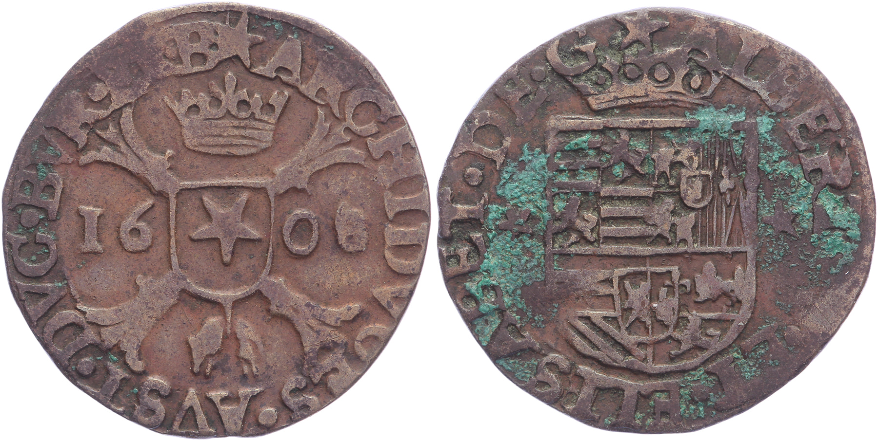 Oord 1608 uit 1606. GH 298-2; Vanhoudt 603-var; PW 9311-var; CNM 2.07.56-var. Niet eerder gesignaleerde overslag. Groene aanslag. Zeer fraai. ⁂