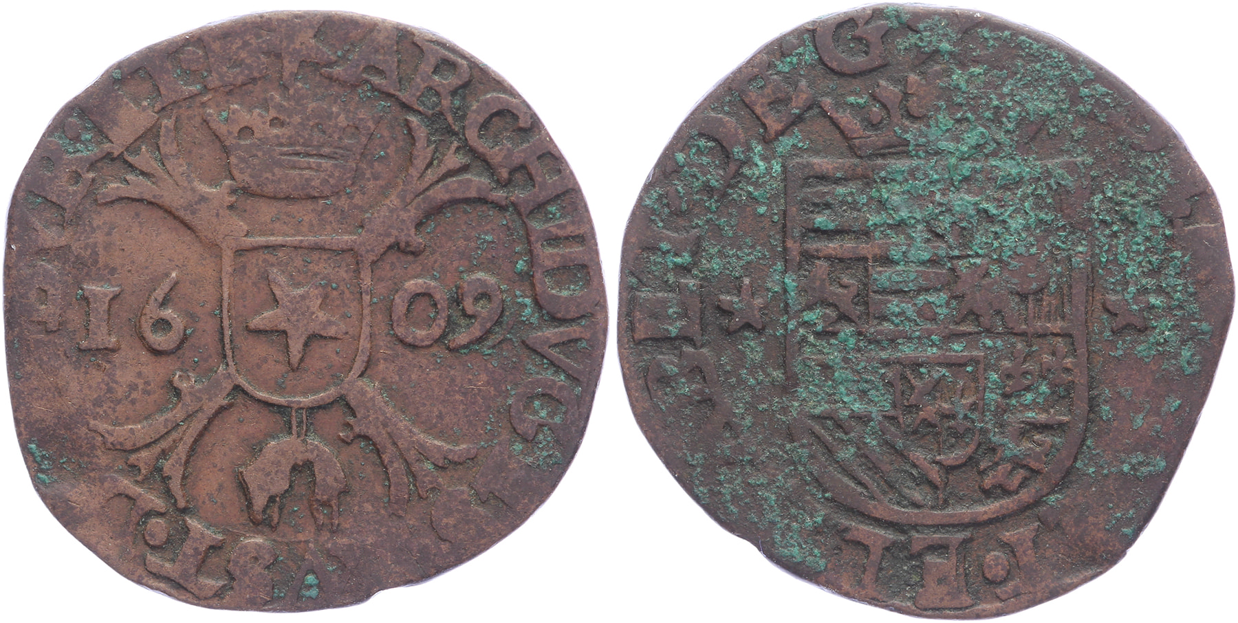 Oord 1609, ster in het wapen met punt naar beneden. GH 298-2; Vanhoudt 603; PW 9311(R); CNM 2.07.56. Zeldzaam (R). Fraai / Zeer fraai. ⁂