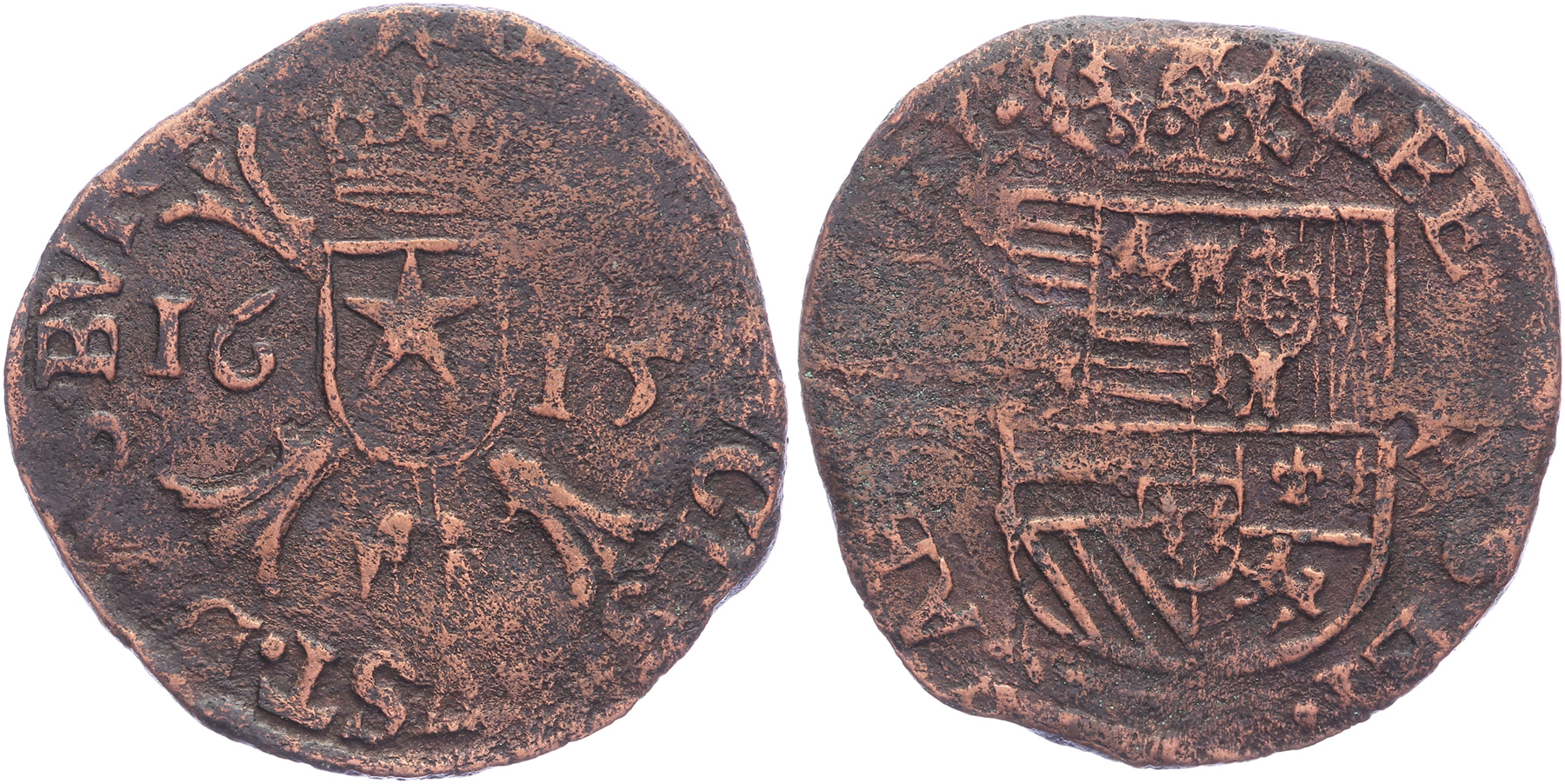 Oord 1615. GH 298-2; Vanhoudt 603 (R1); PW 9311; CNM 2.07.56. Zeldzaam (R). Ruim fraai. ⁂