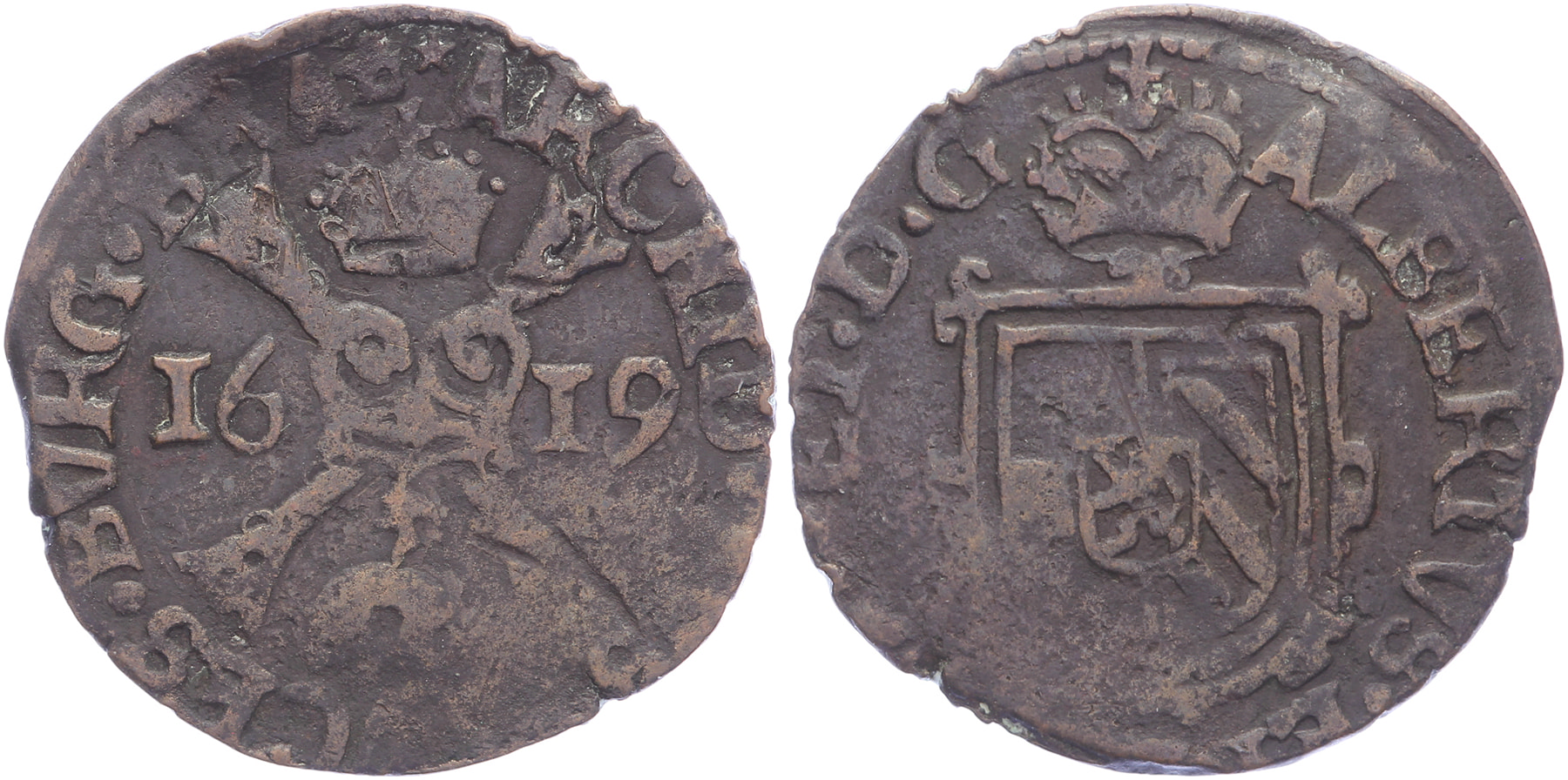 Duit 1619. GH 300-2; Vanhoudt 593 (R1); PW 9310 (R); CNM 2.07.59. Fraai / Zeer fraai. ⁂