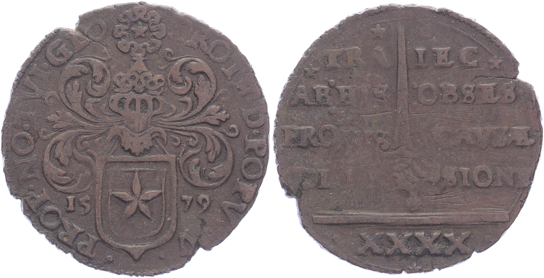 40 Stuiver 1579. Van Gelder 153; Vanhoudt 535; PW Maastricht 8; CNM 2.33.6. Slagbarst. Fraai / Zeer fraai. ⁂