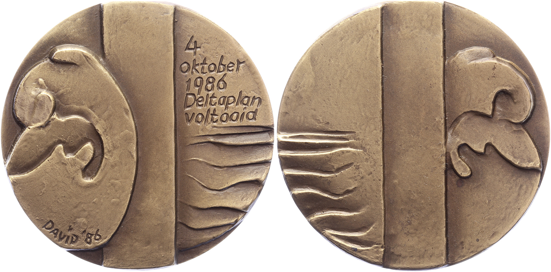 1986 Zeeland. Deltaplan voltooid. Symbolische voorstelling golven tegen stormvloedkering. / Bijna als voorzijde, gespiegeld. Æ 60. David van de Kop. Prachtig.