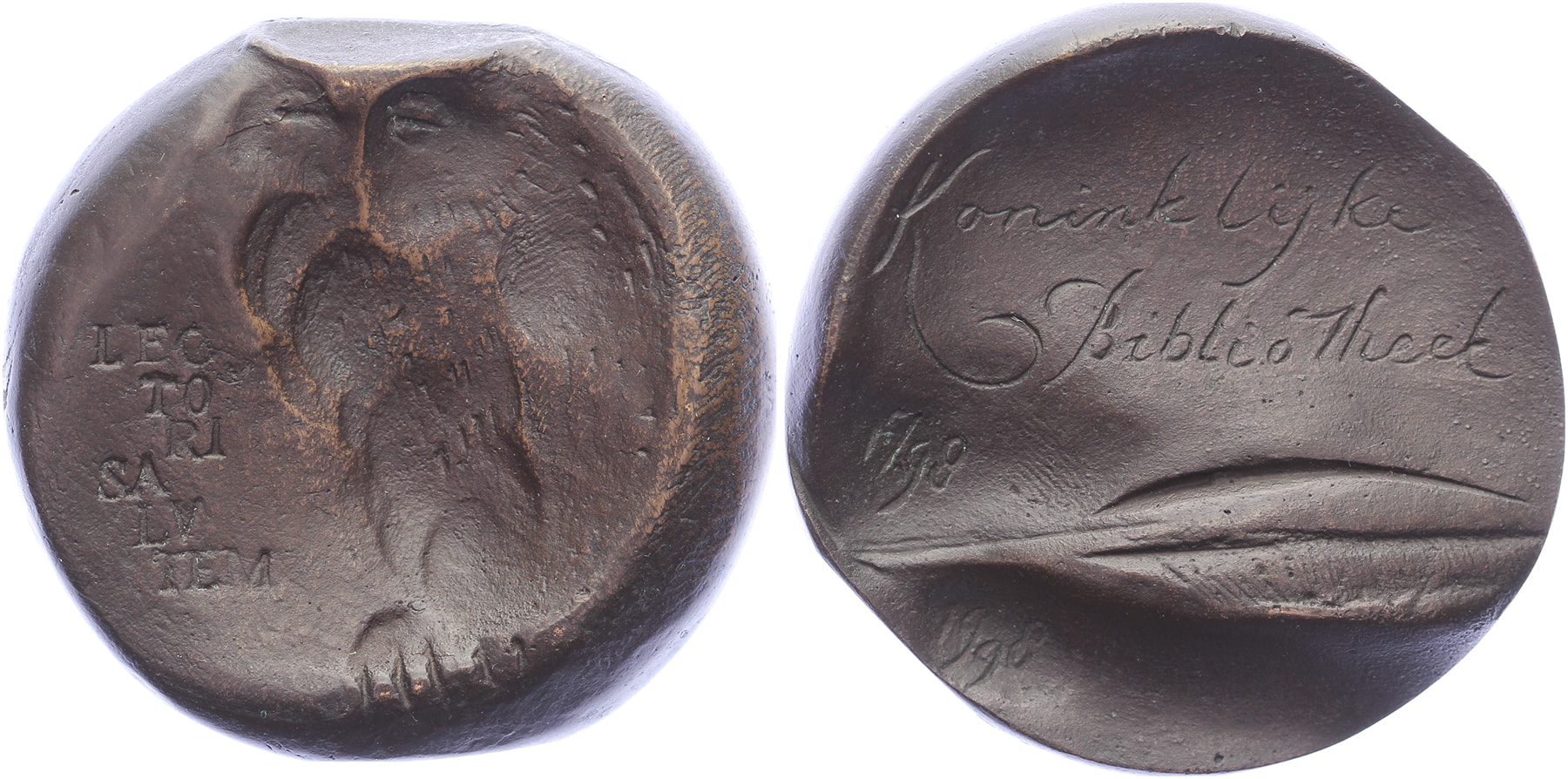 1998 Den Haag. Koninklijke Bibliotheek 200 jaar. Staande uil. / Ganzenveer met jubileumdata.Æ gegoten 55. (Elisabeth Varga). Prachtig.