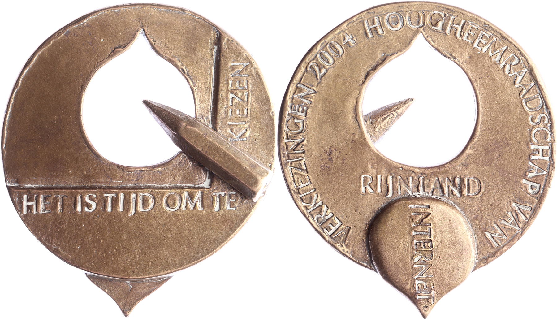 2004 Verkiezingen Hoogheemraadschap van Rijnland. Druppelvormig gat met potlood. / Idem.Æ gegoten 70x80. De Beeldenaar 2008, pag. 264, nr. 311. (Eric Claus). Prachtig.