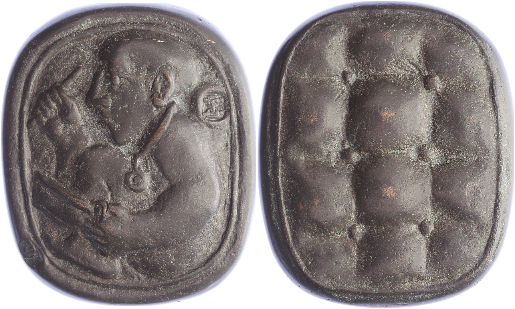 1994 Utrecht, 150 jaar Diaconessenhuis. Zittende figuur met stethoscoop, beddenpan en pen. / Matras. Æ gegoten 60 x 70. De Beeldenaar 2003, pag. 230, nr. 82. Theo van de Vathorst. Prachtig.