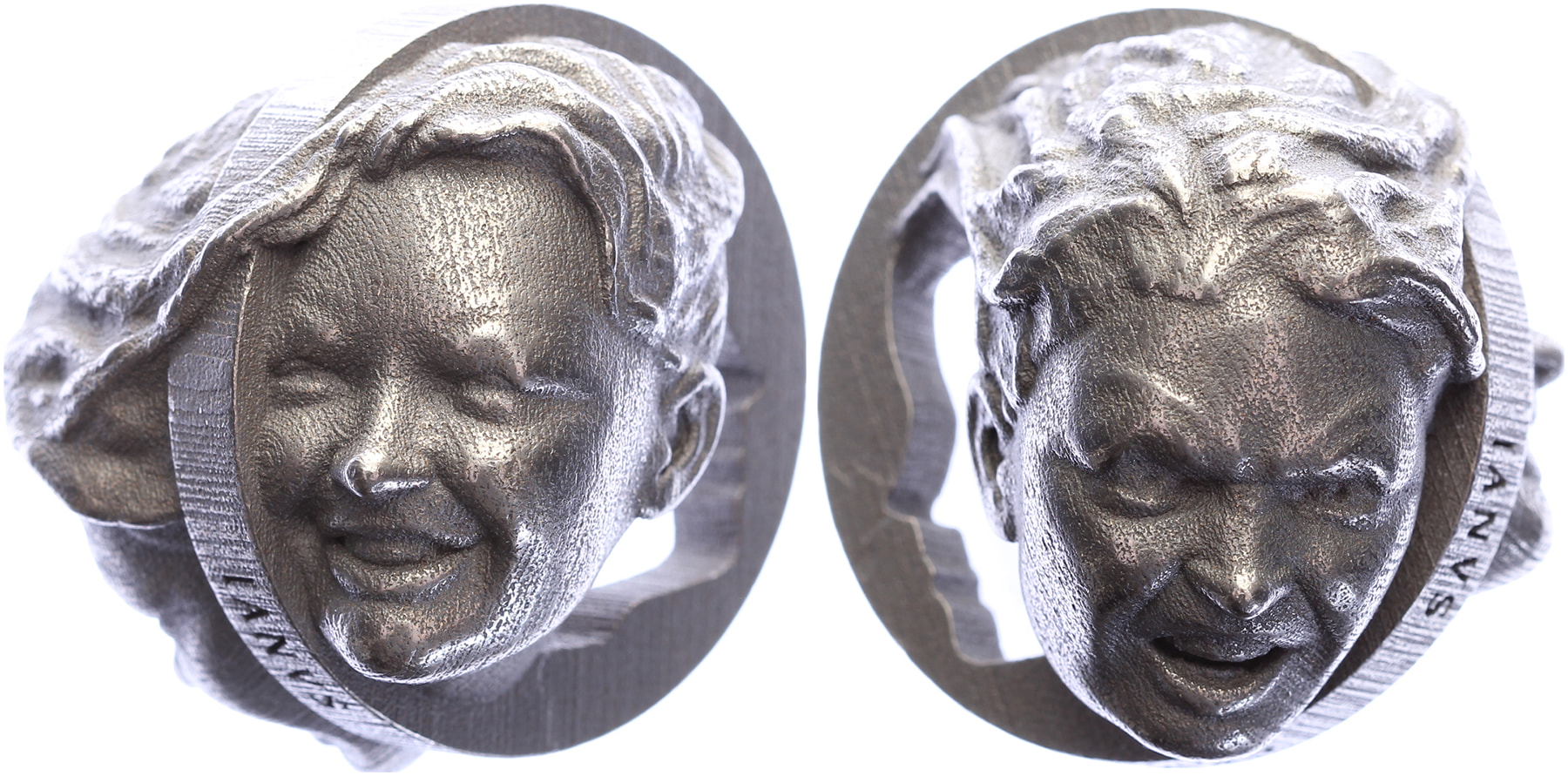 2011 Iavs Semper Vndiqve. Jaarpenning met twee gezichten (Januskop). Roestvrij staal en brons 50 x 45. Jennifer Hoes. Prachtig.