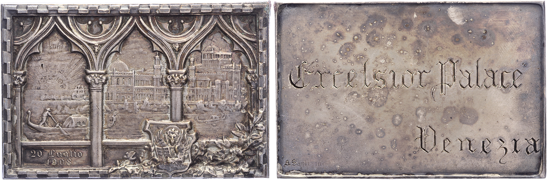 1908 Venice, Excelsior Palace. View at the Palace. / Text.AR 47 x 71 mm. [46,55 gr.]. Allessandro Santi. In original box. EF.