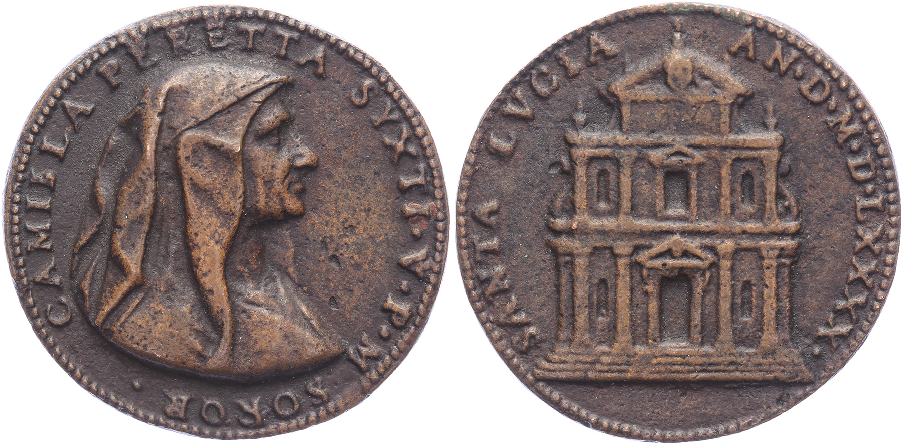 1590 Founding of the church. Bust Santa Lucia right. / View on the church.Æ cast 45 mm. [46,55 gr.]. Later work. Spink Armand 125827. VF.