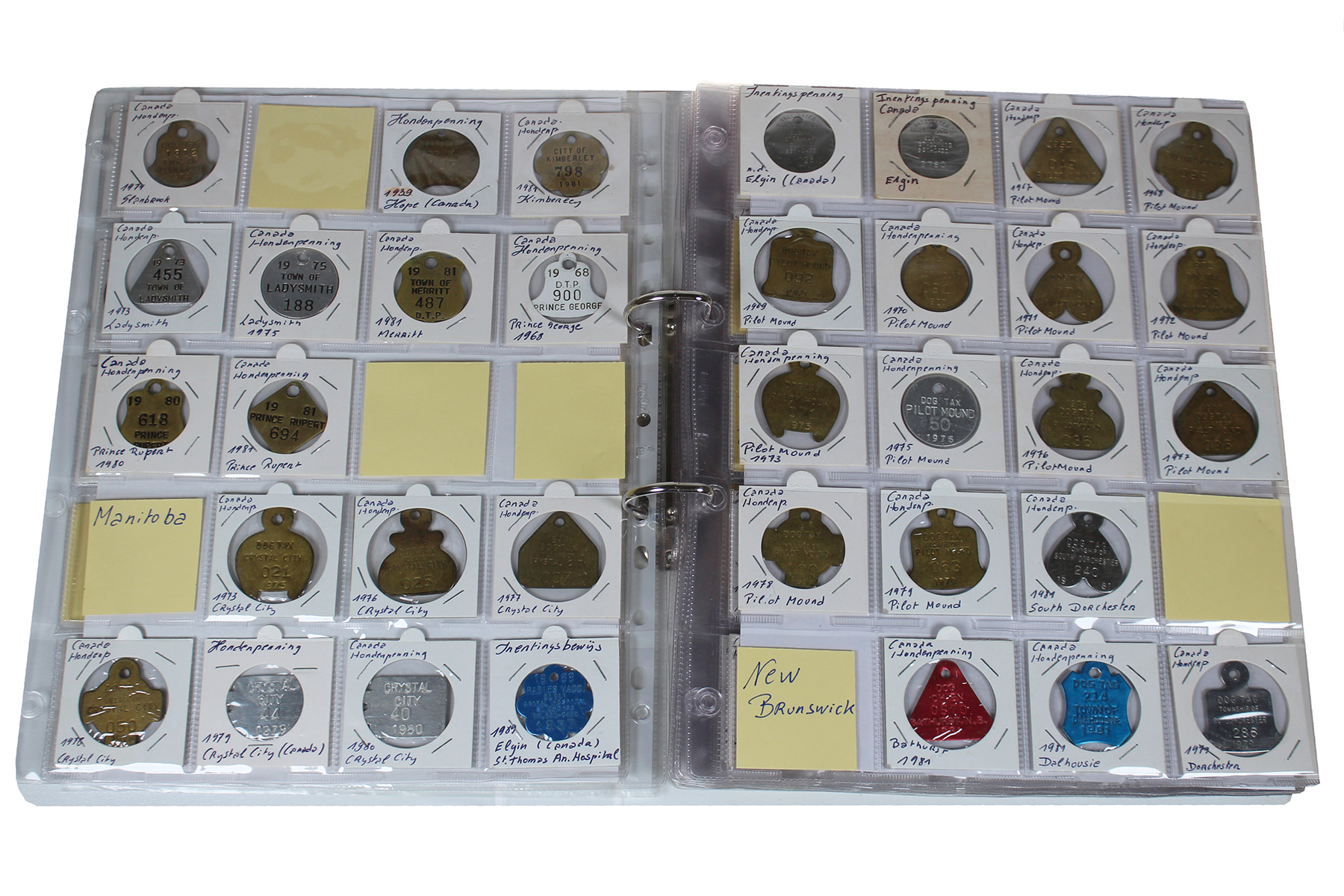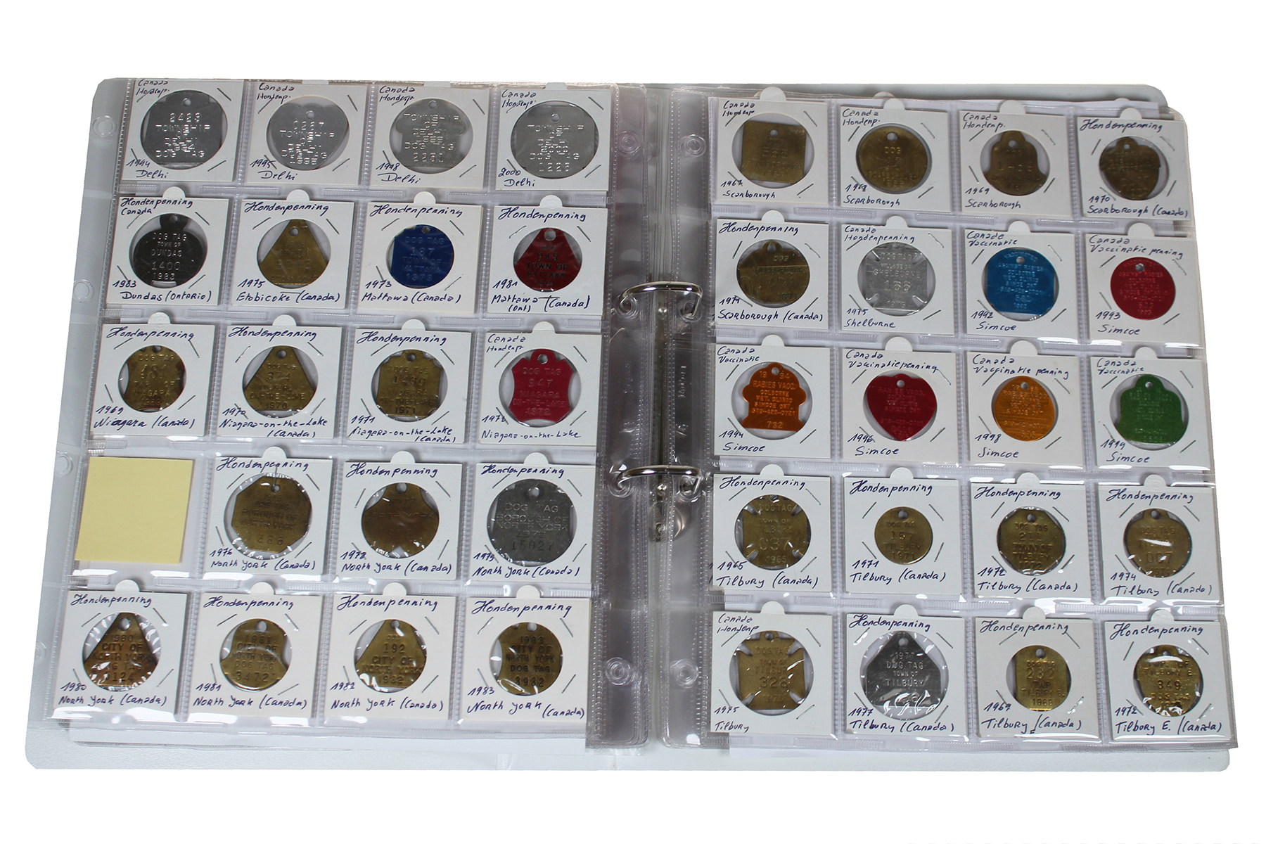 Wit album (219) Canadese hondenpenningen (dog tags) uit alle provincies. Apart!