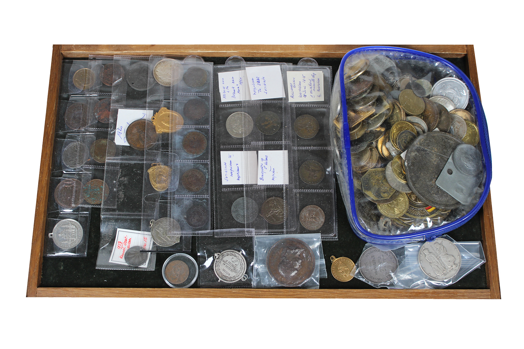 Schoenendoos proppievol wereldpenningen, nadruk op België, diverse eeuwen en metalen, leuke nagietsels etc. etc. Goed nakijken.