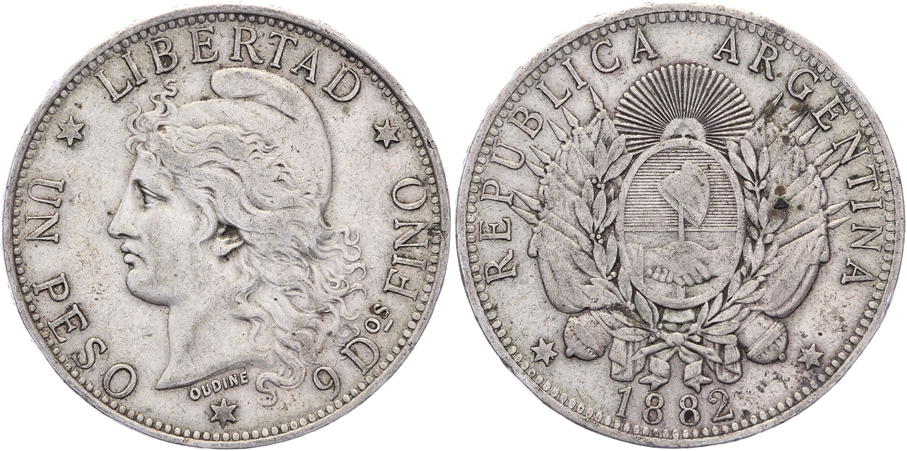 1 Peso 1882. KM 29. VF.