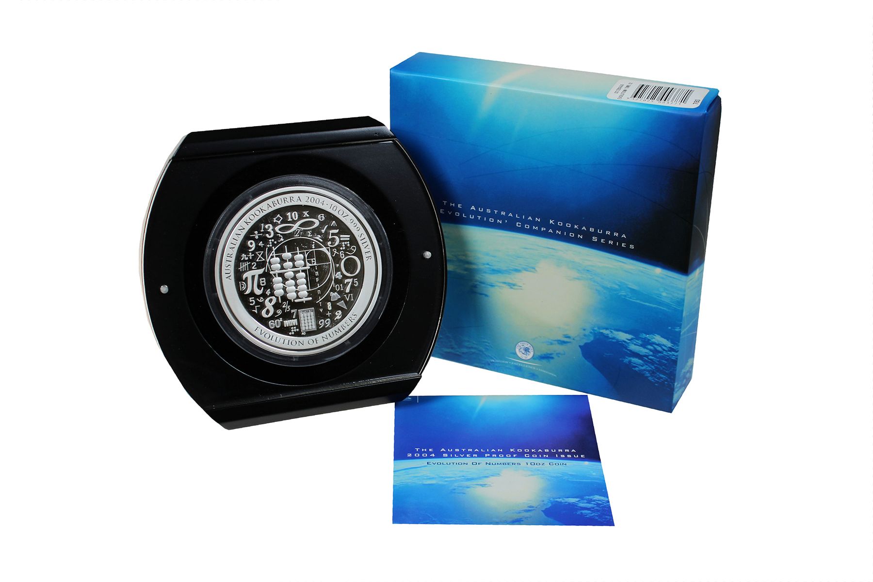 10 Dollars 2004 ‘Evolution of Numbers’, 10 oz. silver [311 gr.]. KM 739. Original packing. Proof.