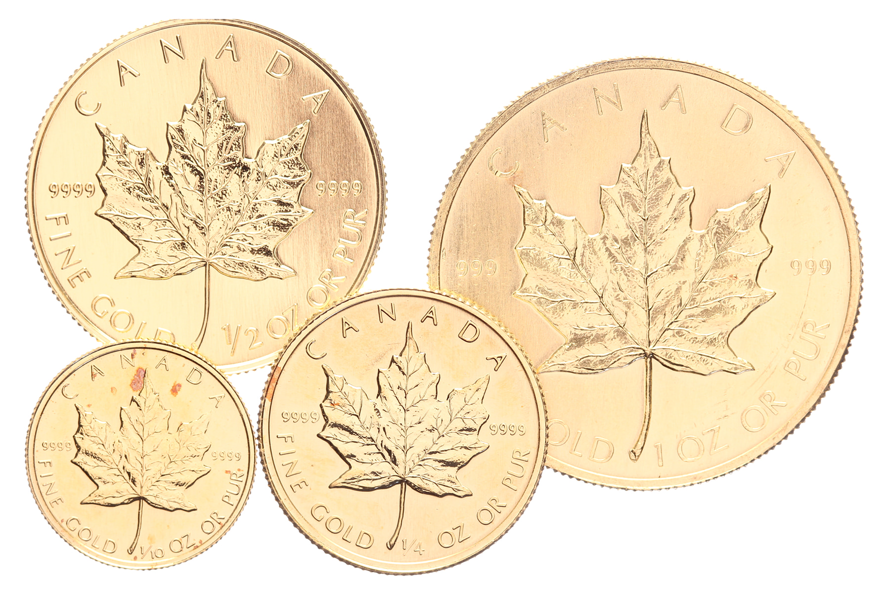 Lot (4) Serie Bullion Gold – 1/10 Ounce 1983, ¼ Ounce 1982, ½ Ounce 1990 en 1 Ounce 1979. Totaal netto AU 57,5 gr.