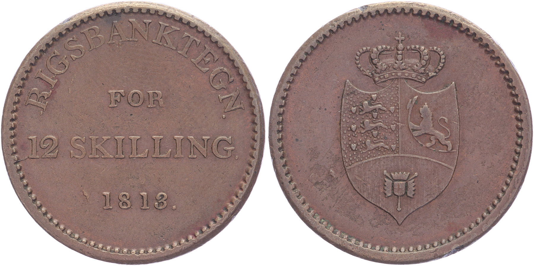 12 Skilling 1813 (Rigsbanktegn). KM Tn2. Almost EF.