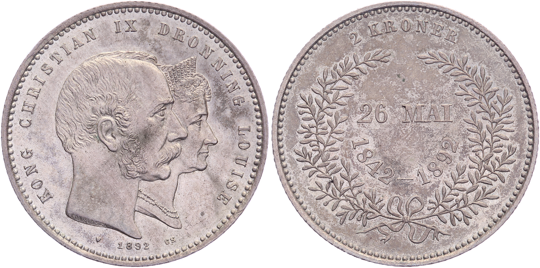 2 Kroner 1892 Golden Wedding. KM 800. EF.