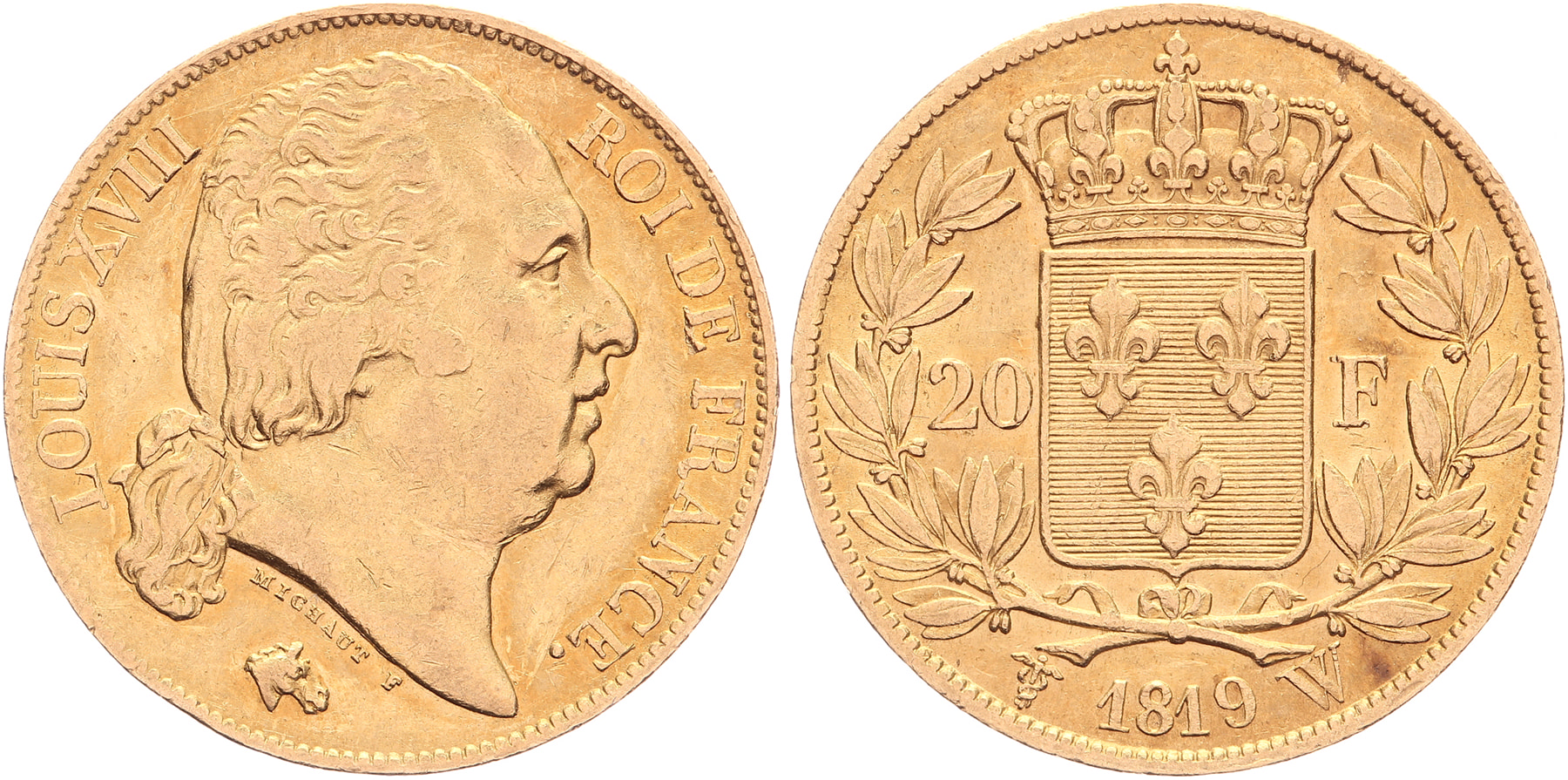 20 Francs 1819 W. Fr. 539; KM 712.9. VF.
