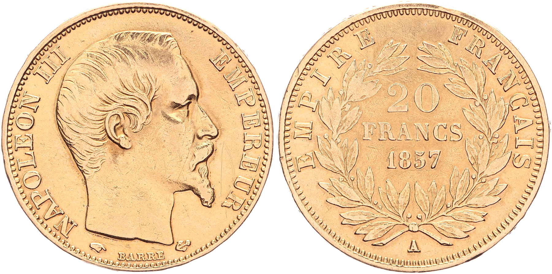 20 Francs 1857A. KM 781.1. (6,39 gram). Polished. F / VF.