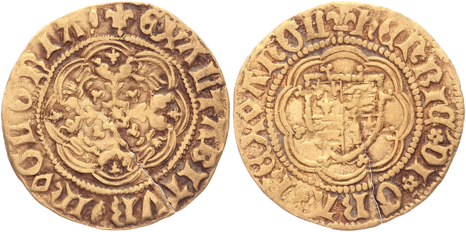 Quarter noble n.d. (1422-1430). Fr. 117; S. 1822 [1,65 gr.]. Flan crack, otherwise VF.