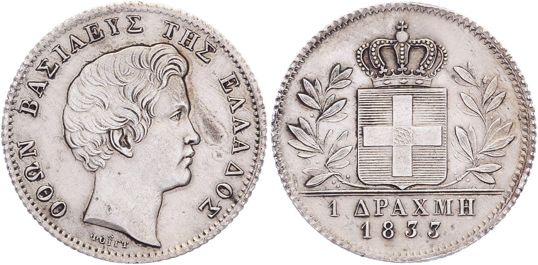 Drachma 1833. KM 15. Near EF.