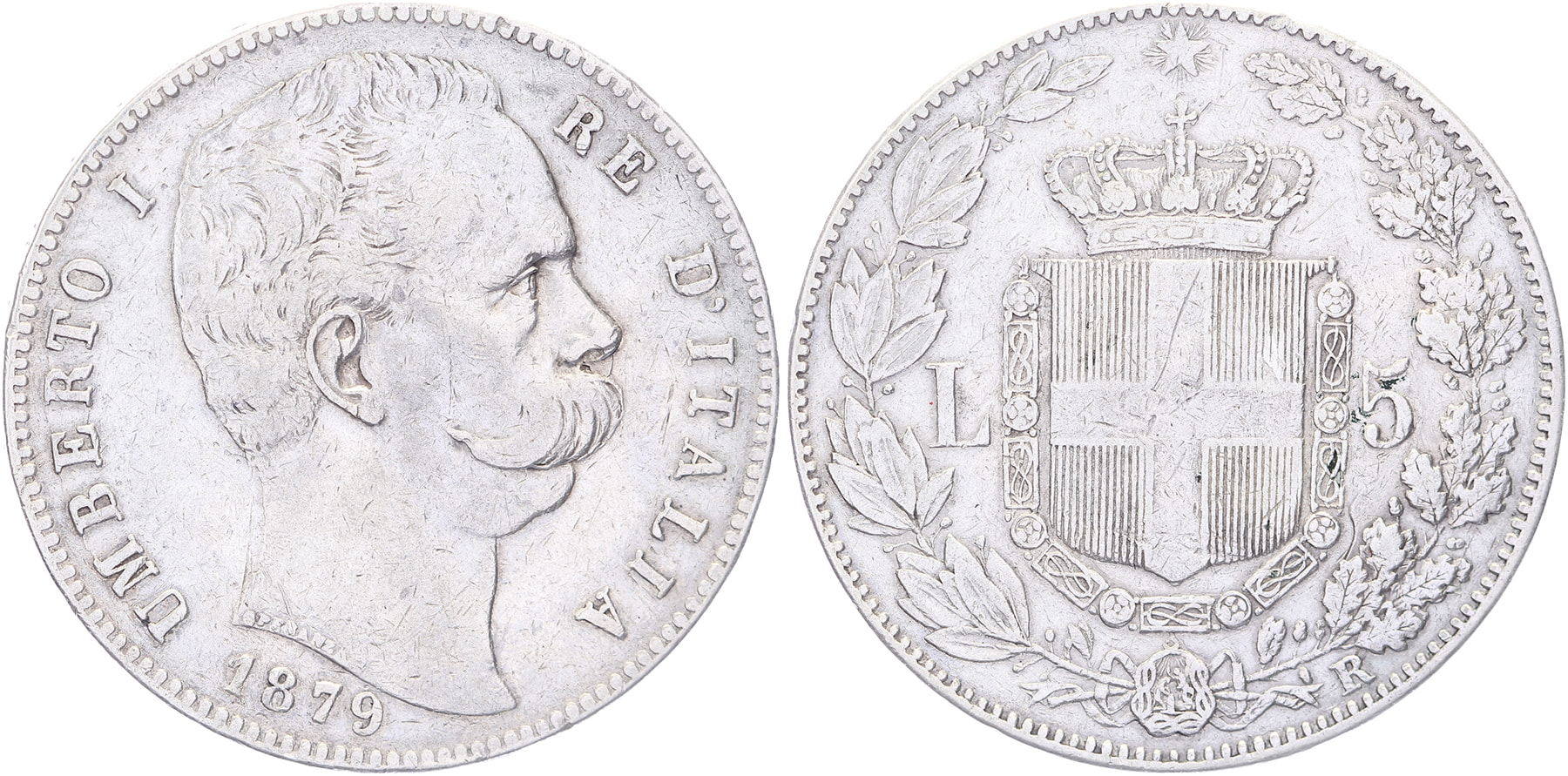 5 Lire 1879. KM 20. Very Fine.
