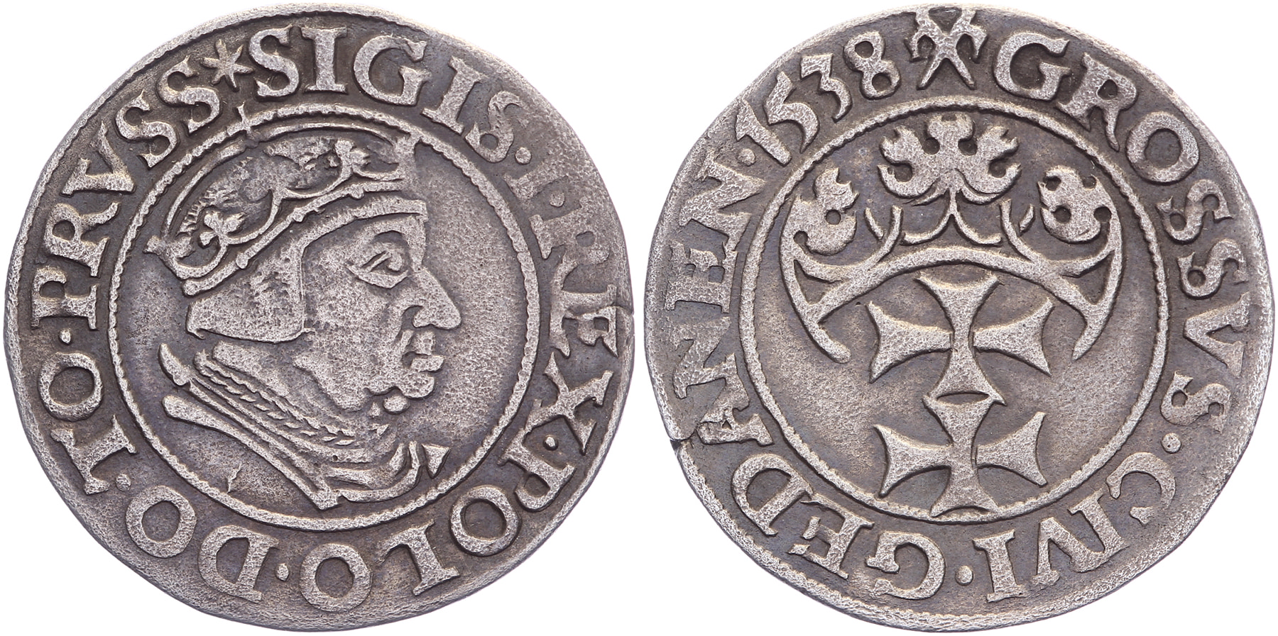 Groschen 1538, Danzig. (SIGIS • I • REX). Gum. 564. Nice VF.