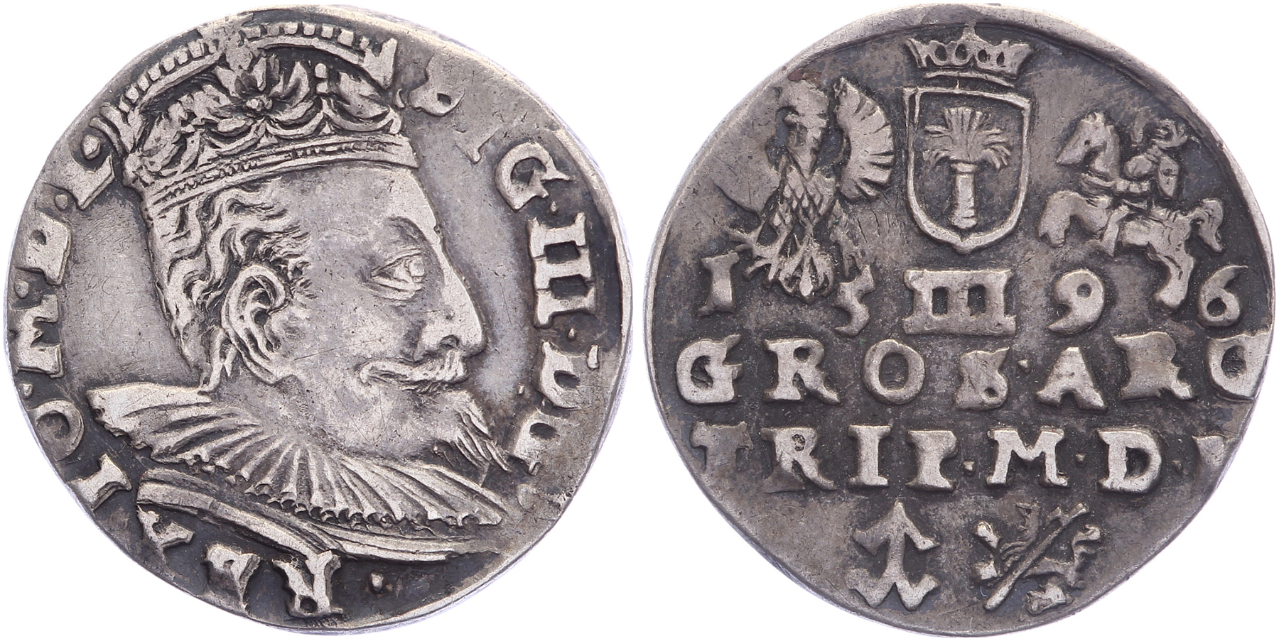 Lot (2) III Groschen 1593, 1596, Litauen. Gum. 1334, 1338. VF.