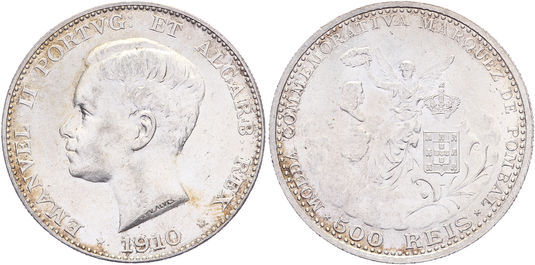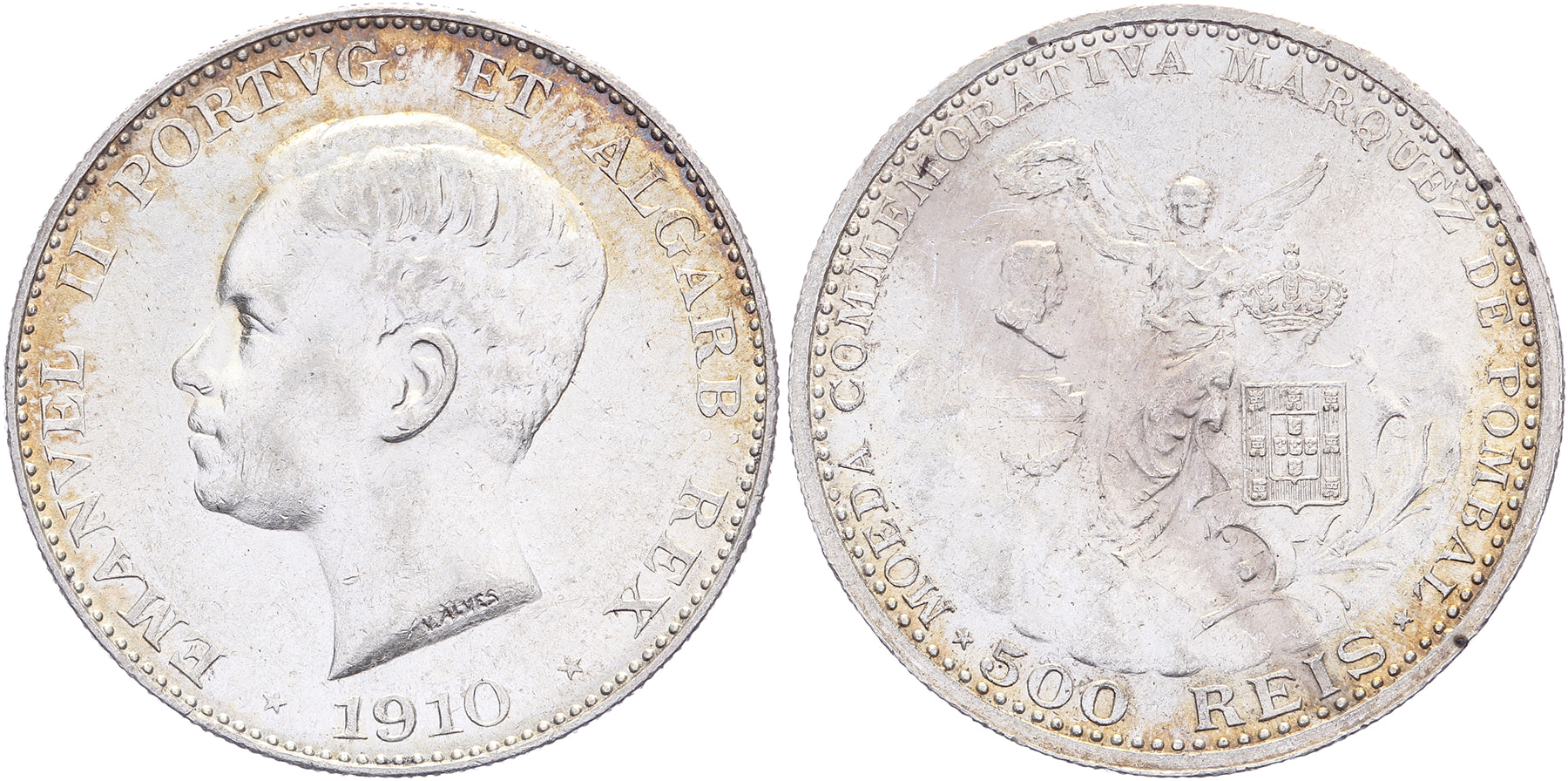 Lot (2) 500 Reis 1910 Marquis de Pombal. KM 557. EF/Unc.
