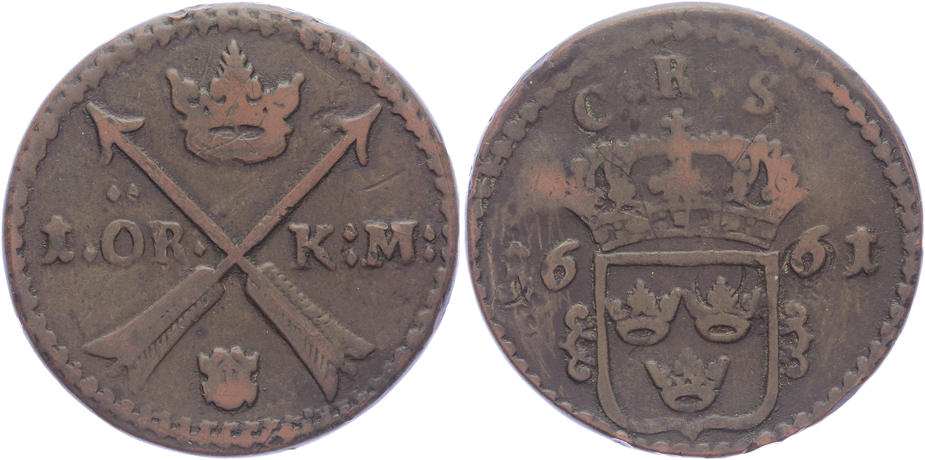 1 Öre 1661. AAH 335; KM 232.1. Near VF.