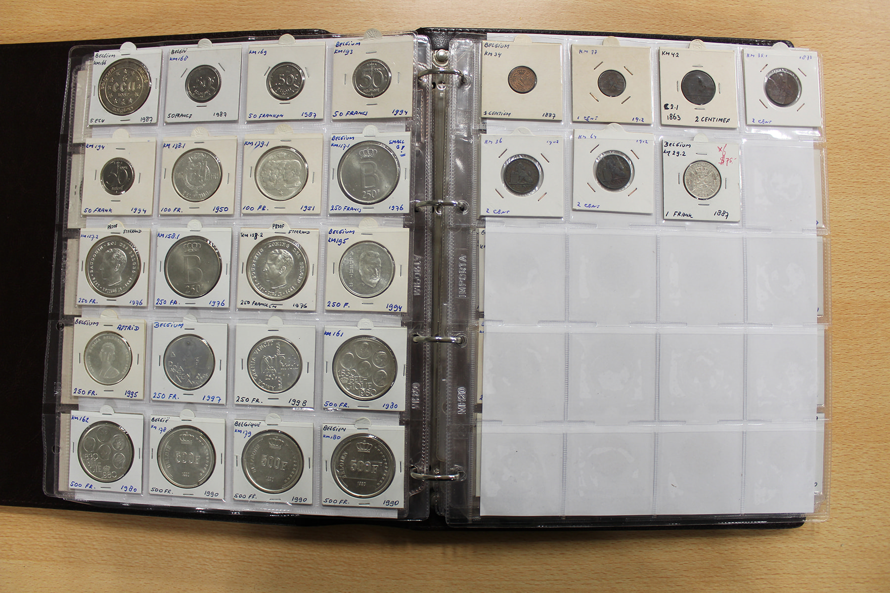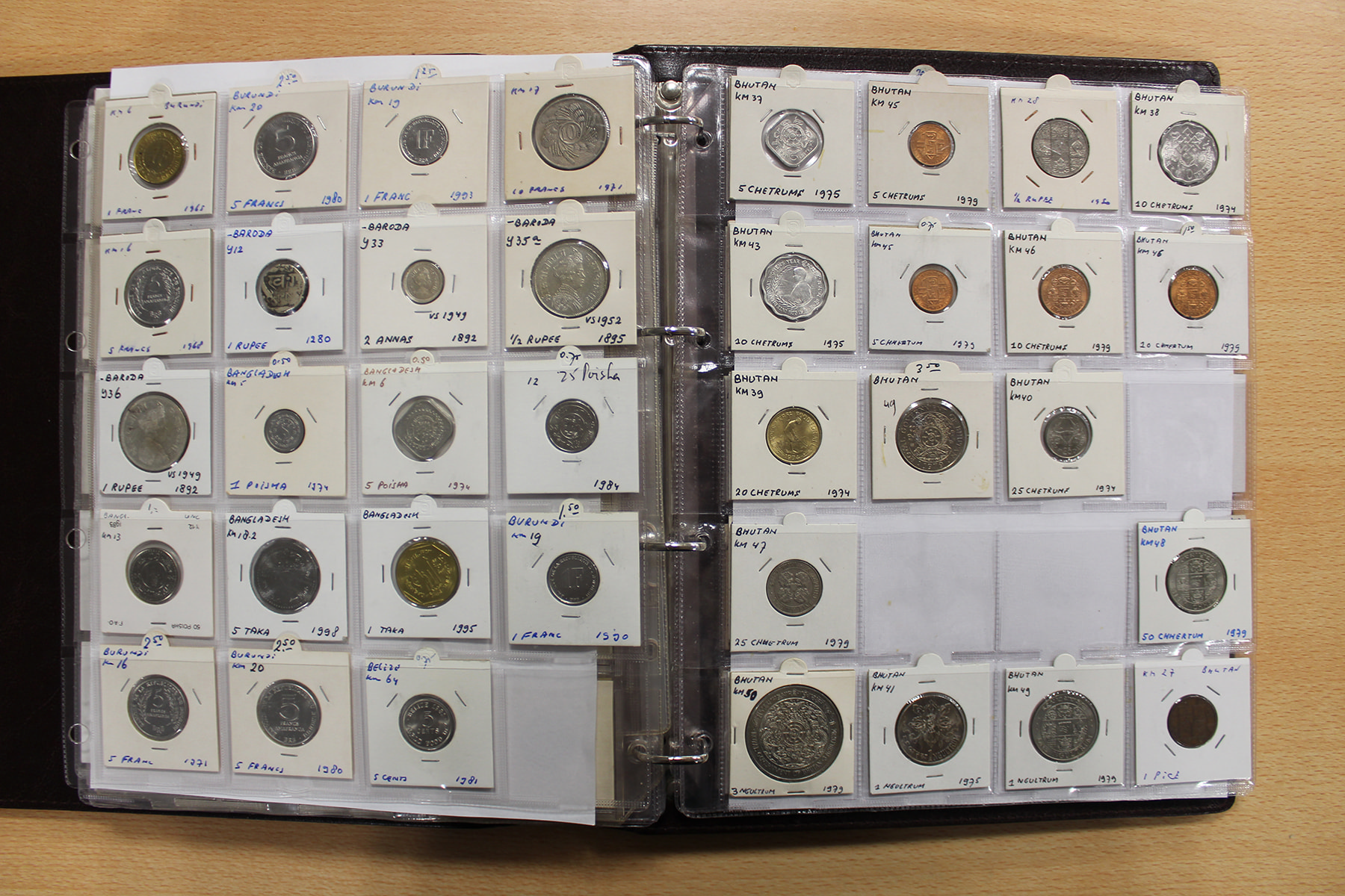 Album wereldmunten voornamelijk België, maar ook landen als Brunei, Burundi, Bhutan en Botswana. Veel zilver. Ruim 275 stuks.