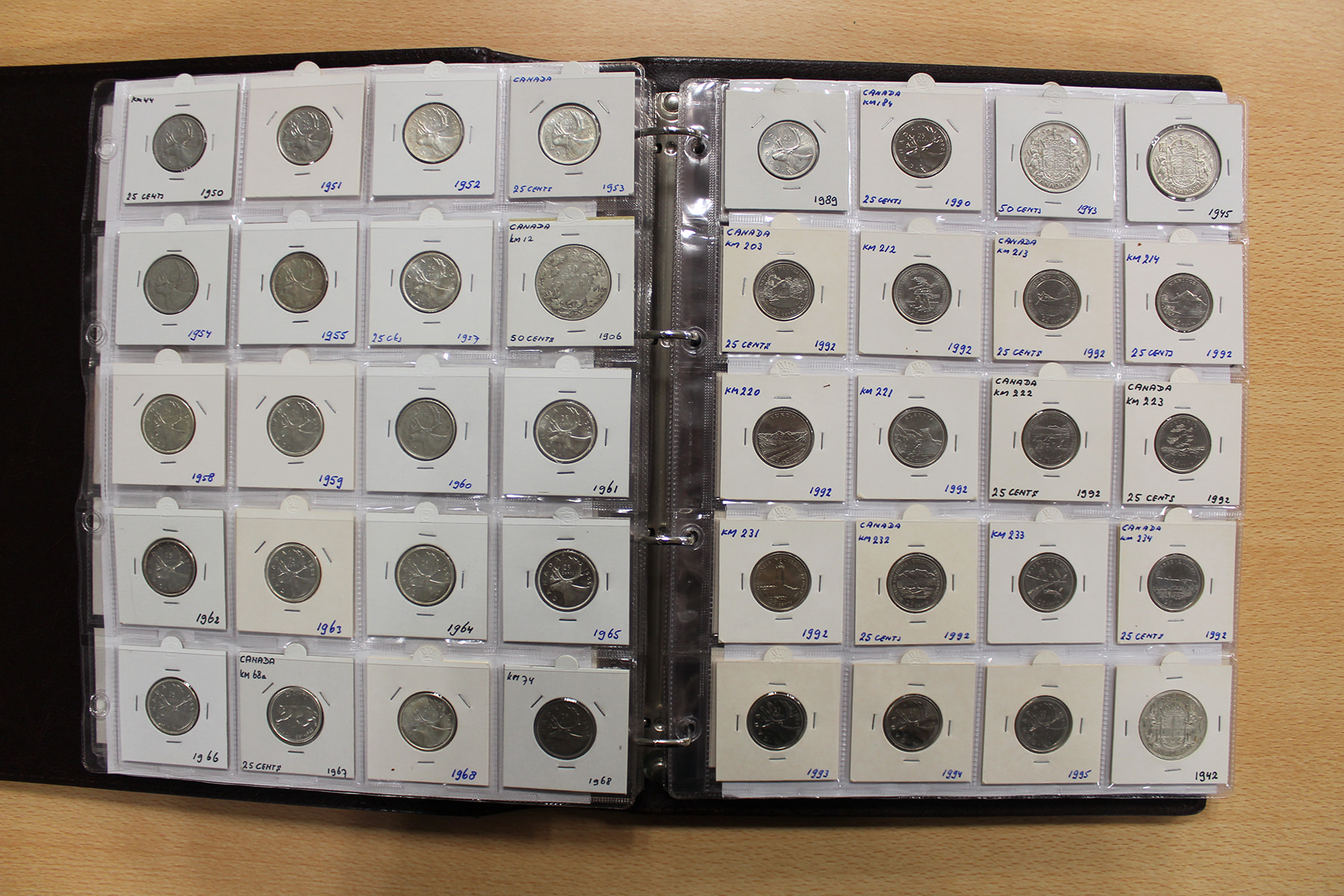 Album wereldmunten met uitsluitend Canada. Ook zilver. Ca. 300 stuks.