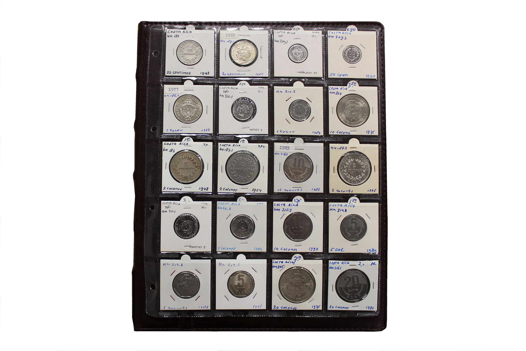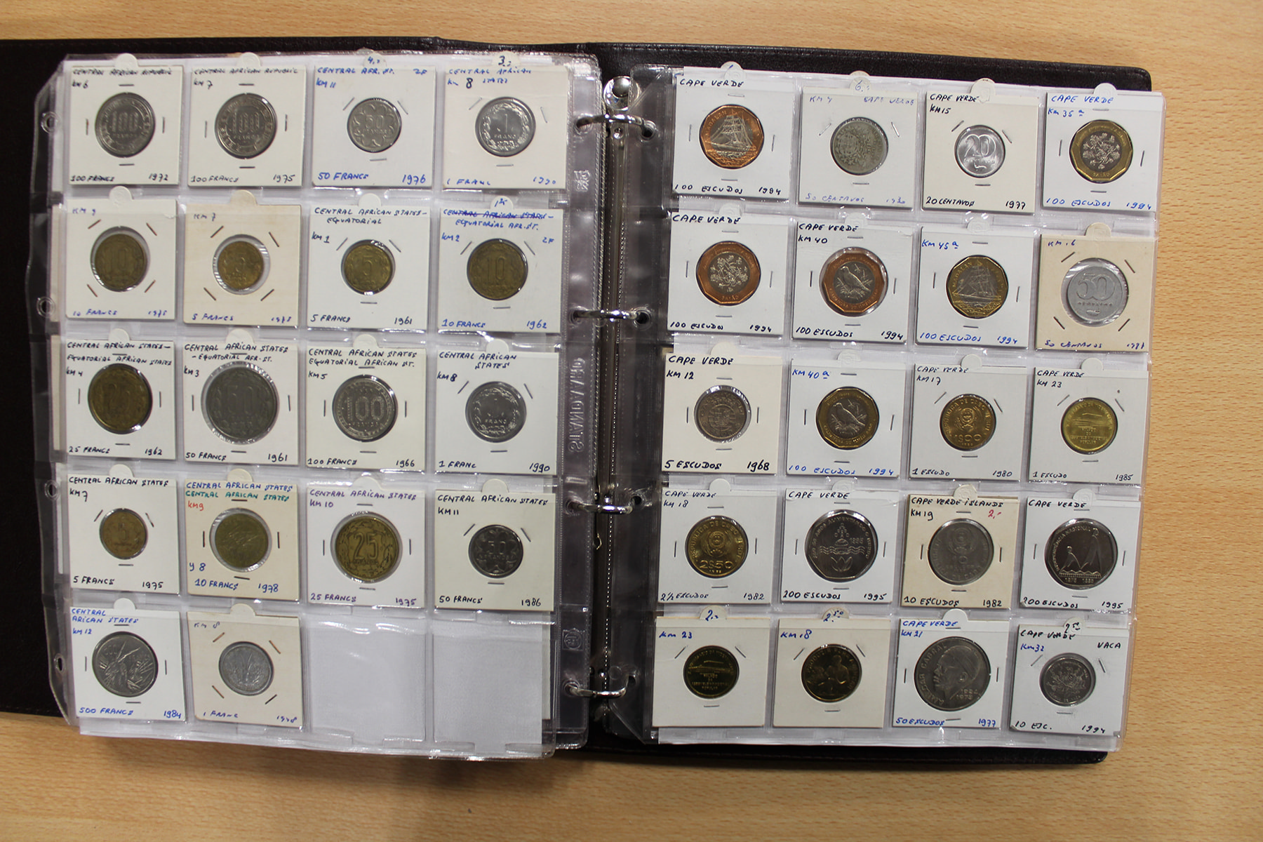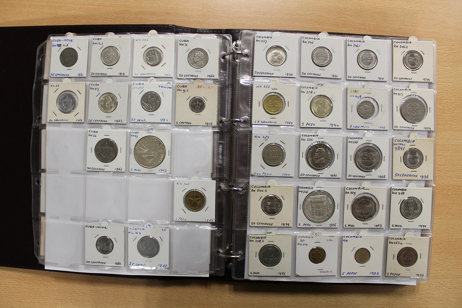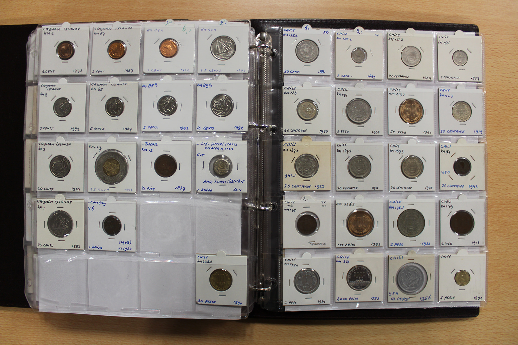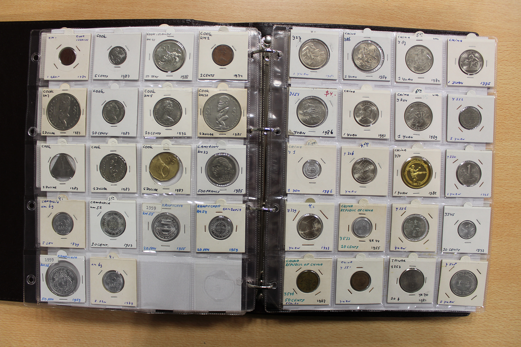 Album wereldmunten met o.a. China, Kaapverdië, Chili, Colombia, Cambodja, Cuba en Costa Rica. Ca. 340 stuks.