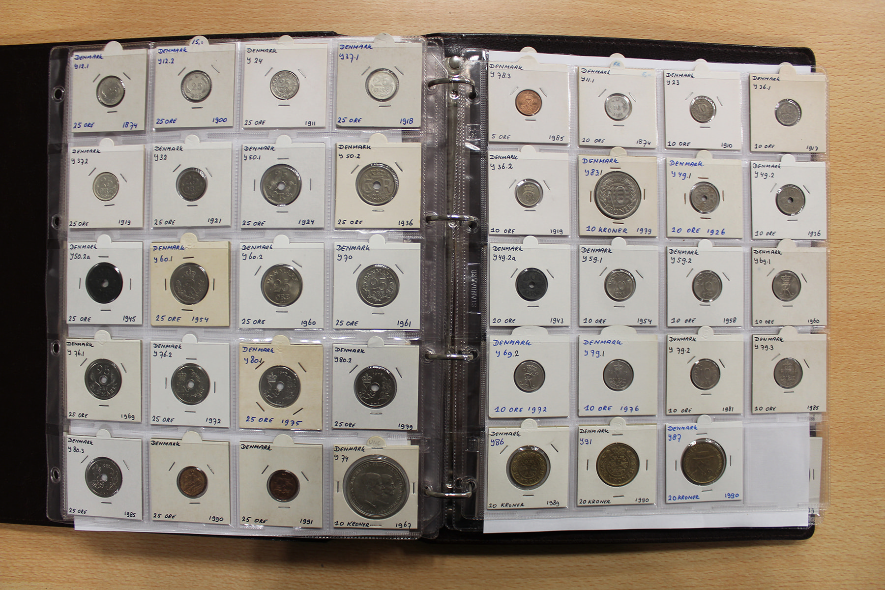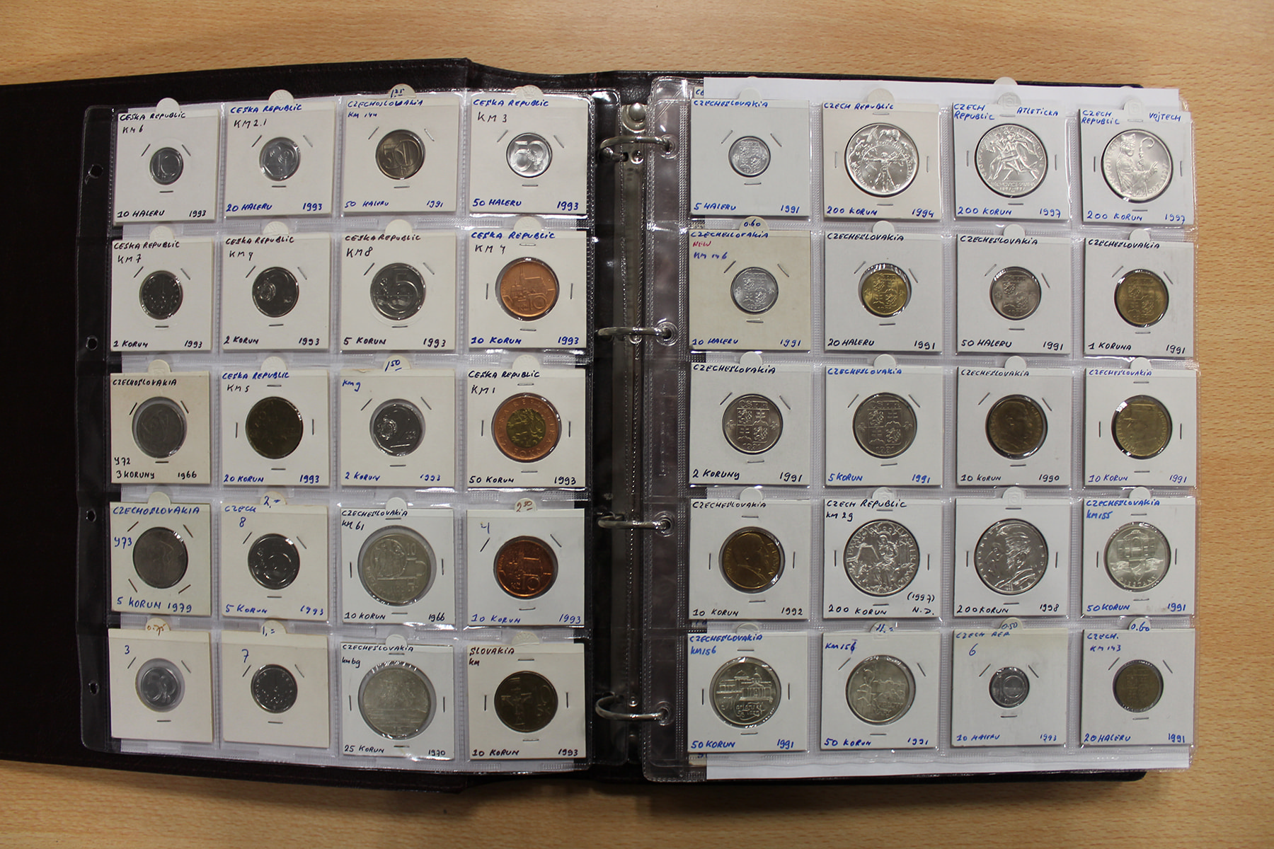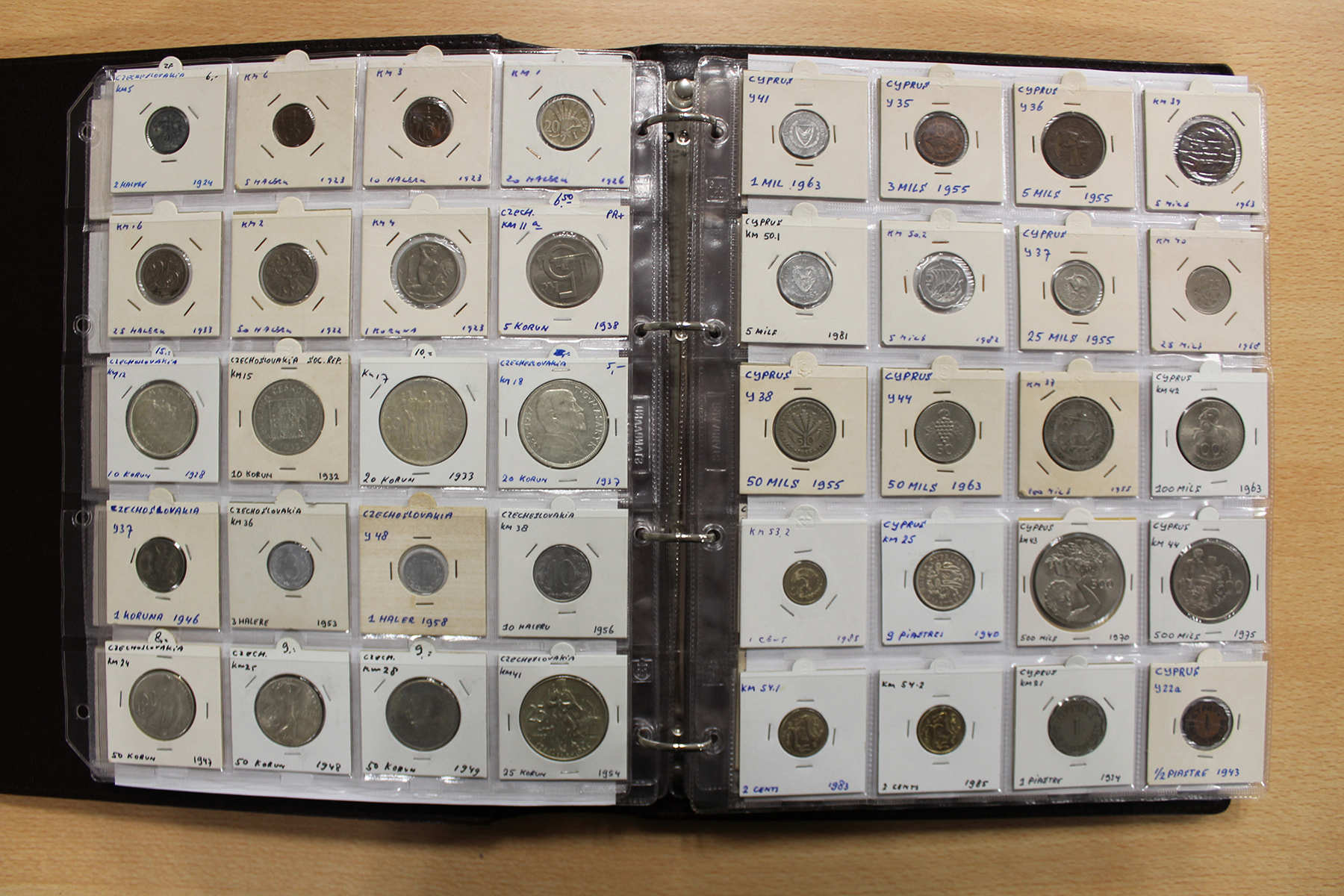 Album wereldmunten met o.a. Tsjechoslowakije, Kroatië, Cyprus en Denemarken. Ook zilver. Ruim 270 stuks.