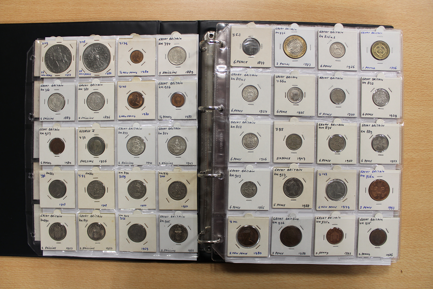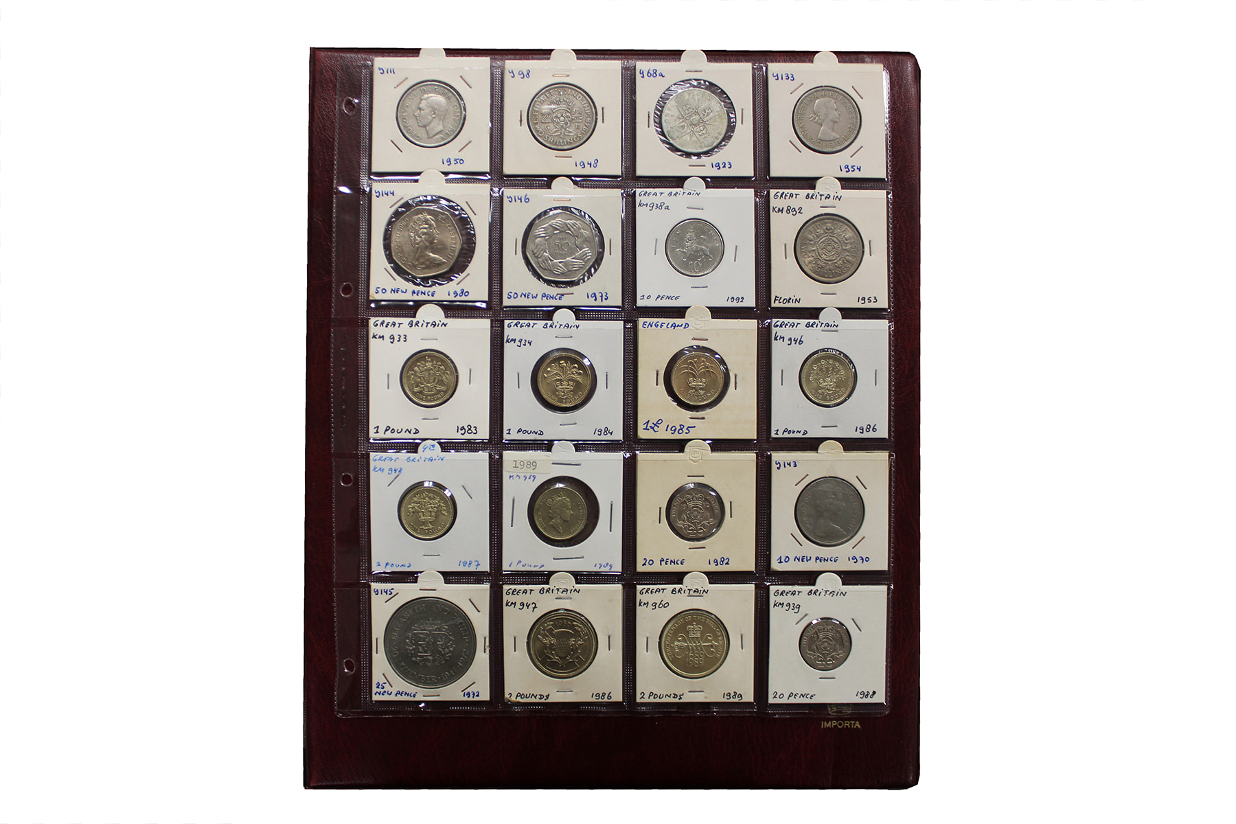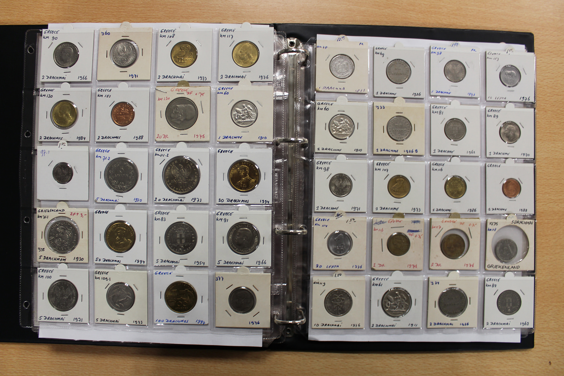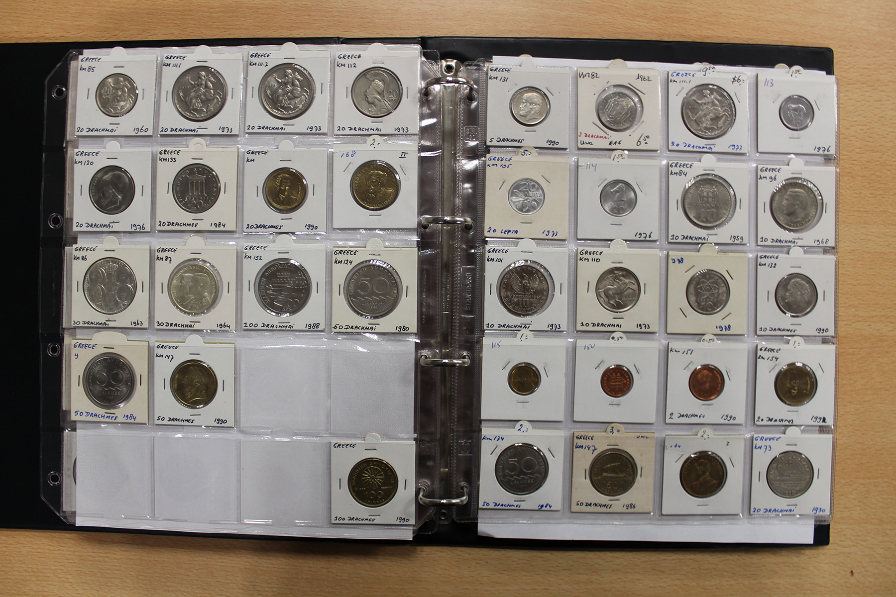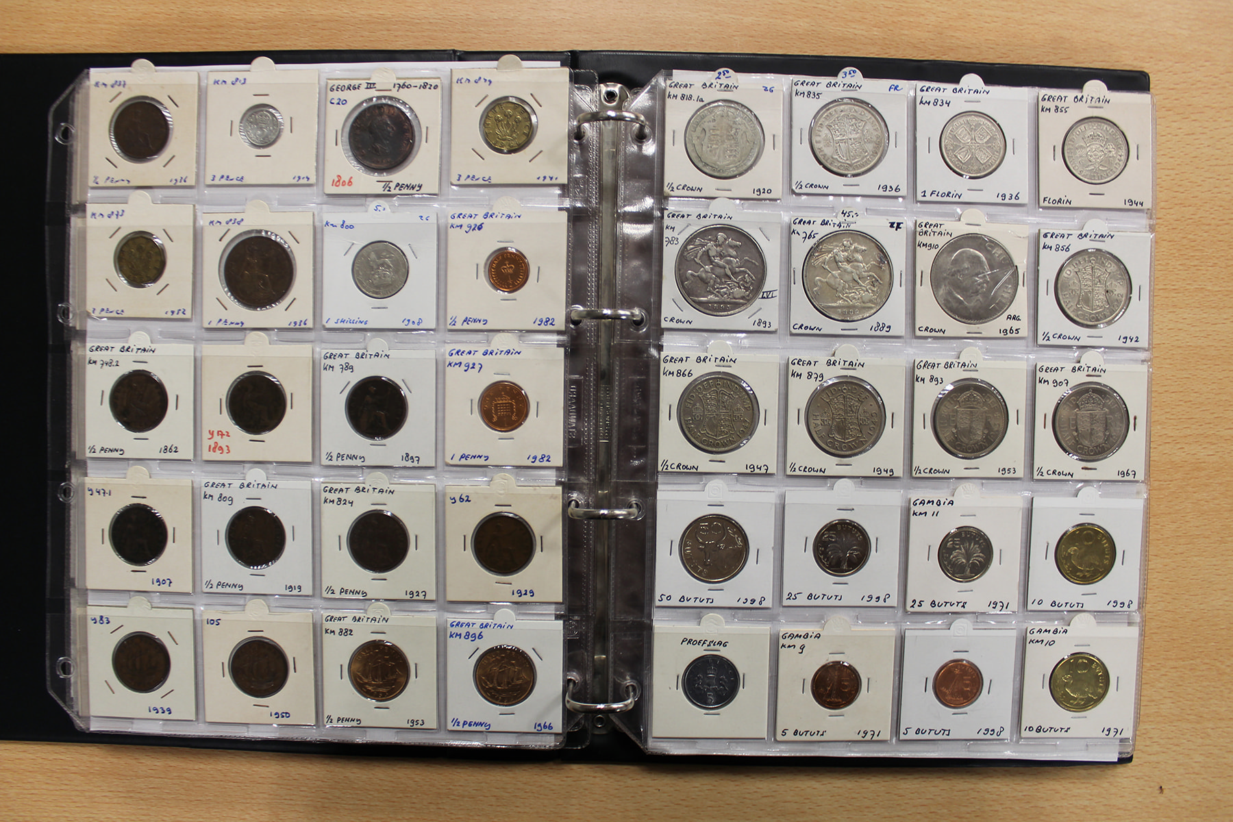 Album wereldmunten met o.a. Groot-Brittannië, Gambia en Griekenland. Ca. 295 stuks.