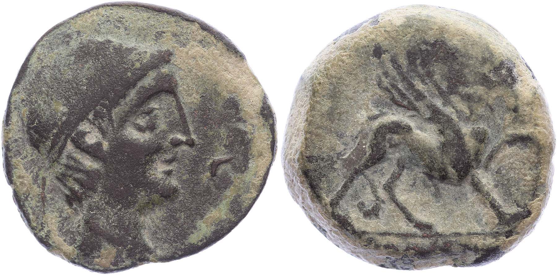 Mid 2nd century BC. AE [25,74 mm; 13,58 gm]. Diademed male head right; crescent before / Sphinx standing right; star to right. CNH p. 335, 32; SNG BM Spain 1314-21. aVF.