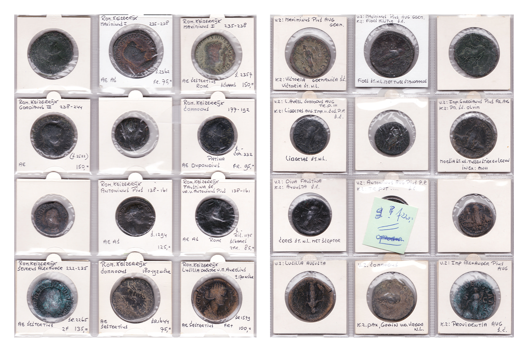 Lot (12) Imperial bronzes, mostly Asses, Dupondii and Sestertii, from the 2/3rd century AD, Incl. some Commodus, Lucilla and Antoninus Pius. Nice selection, mostly mediocre quality.