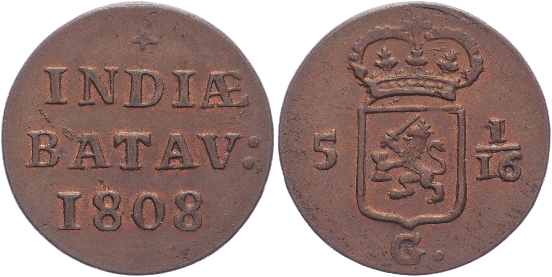 Duit 1808. Sch. 557. Iets originele kleur. Ruim prachtig.