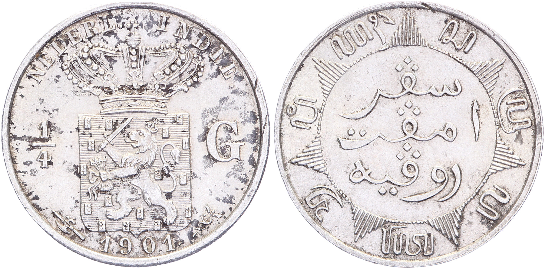 ¼ Gulden 1901. Scholten 801; CNO 36.2. Prachtig.