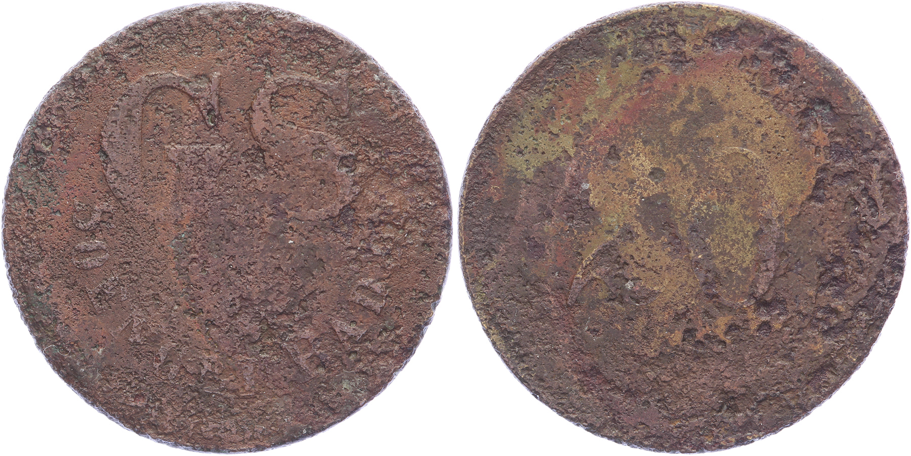 Soengei Radja. 20 cent, geelkoper. LaBe en LaWe: tot op dit moment onbekend in deze serie. R4. Corrosie, ZG / Fraai.