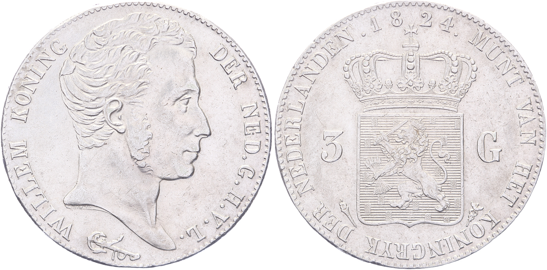 3 Gulden 1824 Utrecht mmt. fakkel LSch. 259; Sch. 246 Ruim zeer fraai
