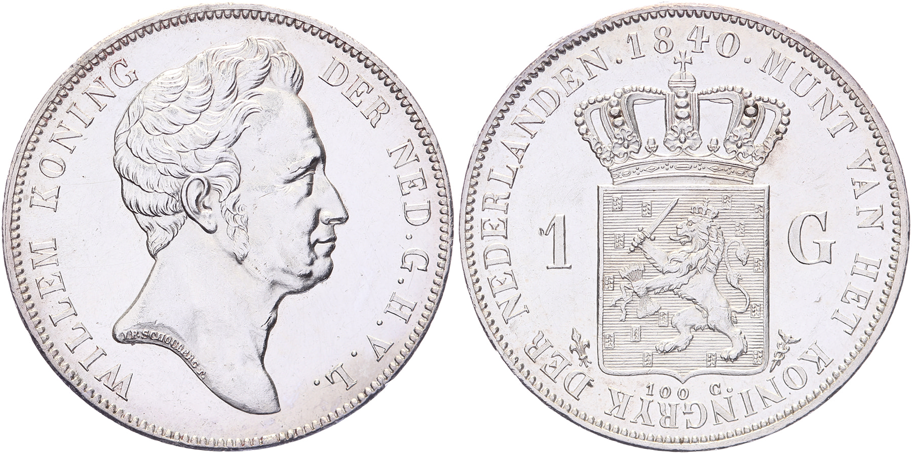 1 Gulden 1840 mmt. lelie LSch. 281; Sch. 278. Mogelijk first strike! Prachtig / FDC