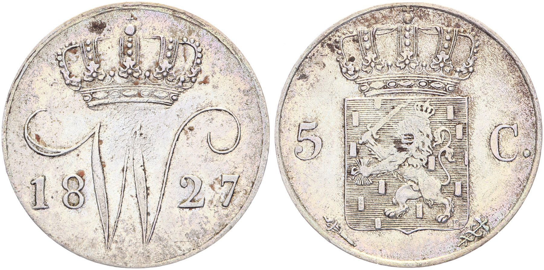 5 Cents 1827 Utrecht mmt. fakkel LSch. 319; Sch. 317 Ruim zeer fraai
