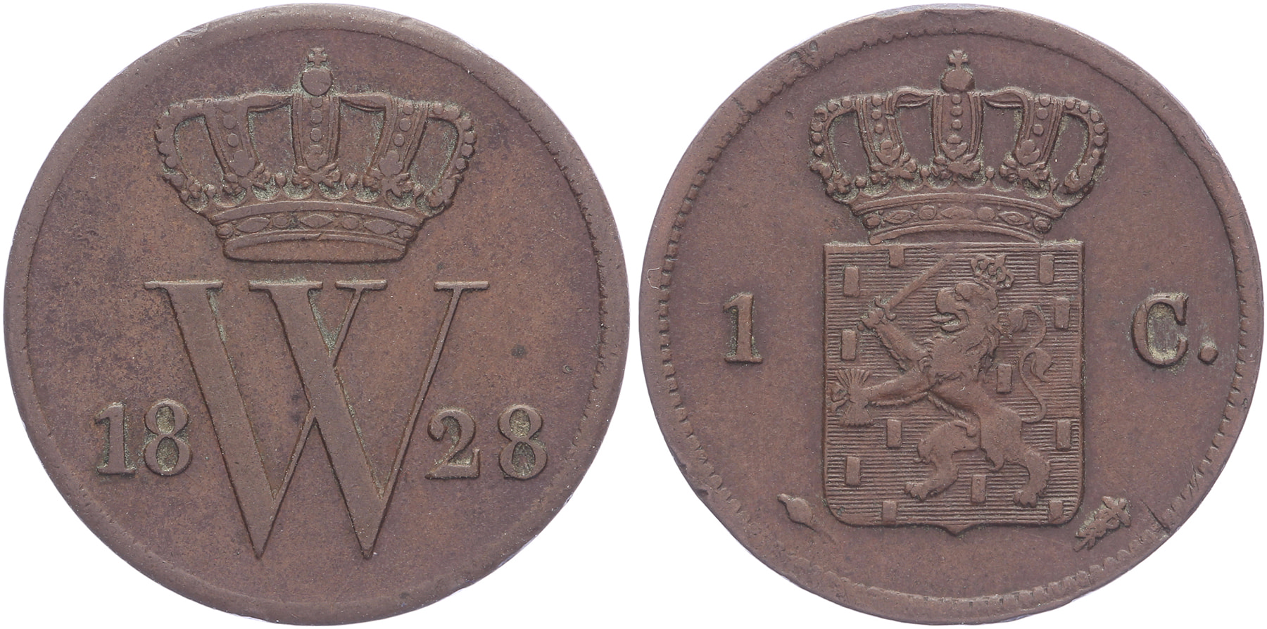 1 Cent 1828 Utrecht mmt. fakkel LSch. 334; Sch. 331 Zeer fraai