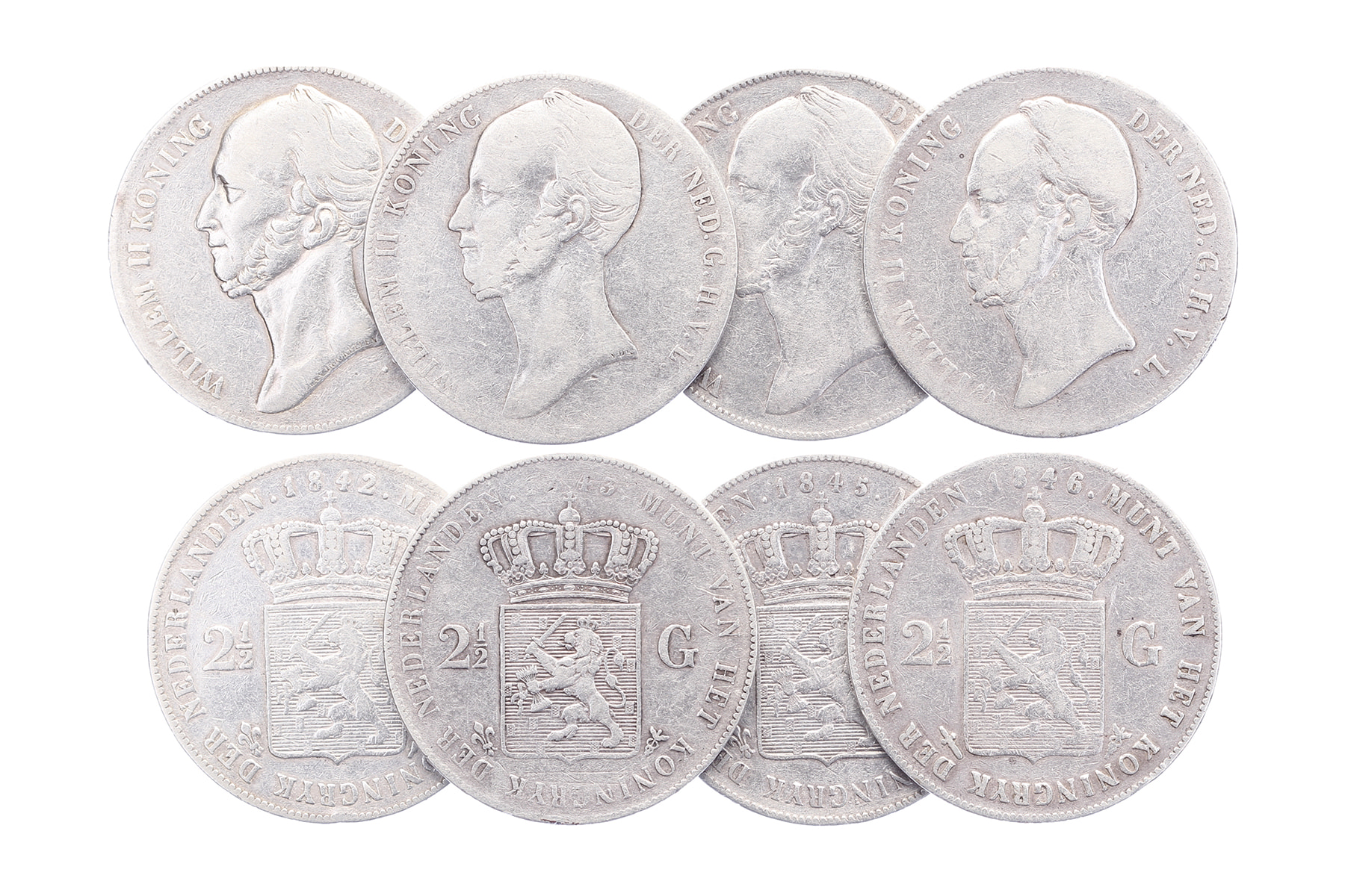 Lot (4) Rijksdaalder 1842, 1843, 1845, 1846 LSch. 383, 385, 387, 390; Sch. 507, 508, 510, 513 Fraai / Zeer fraai