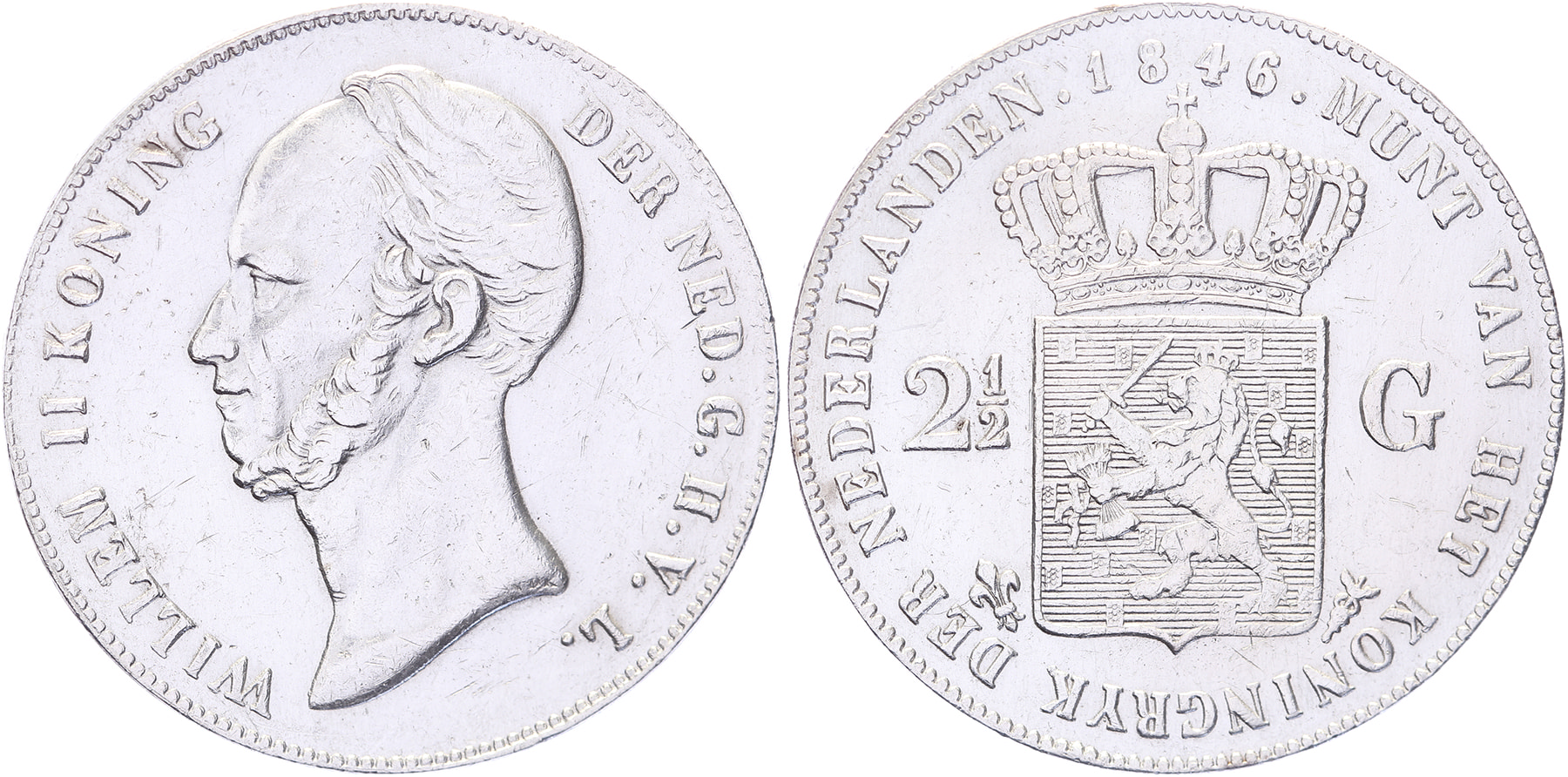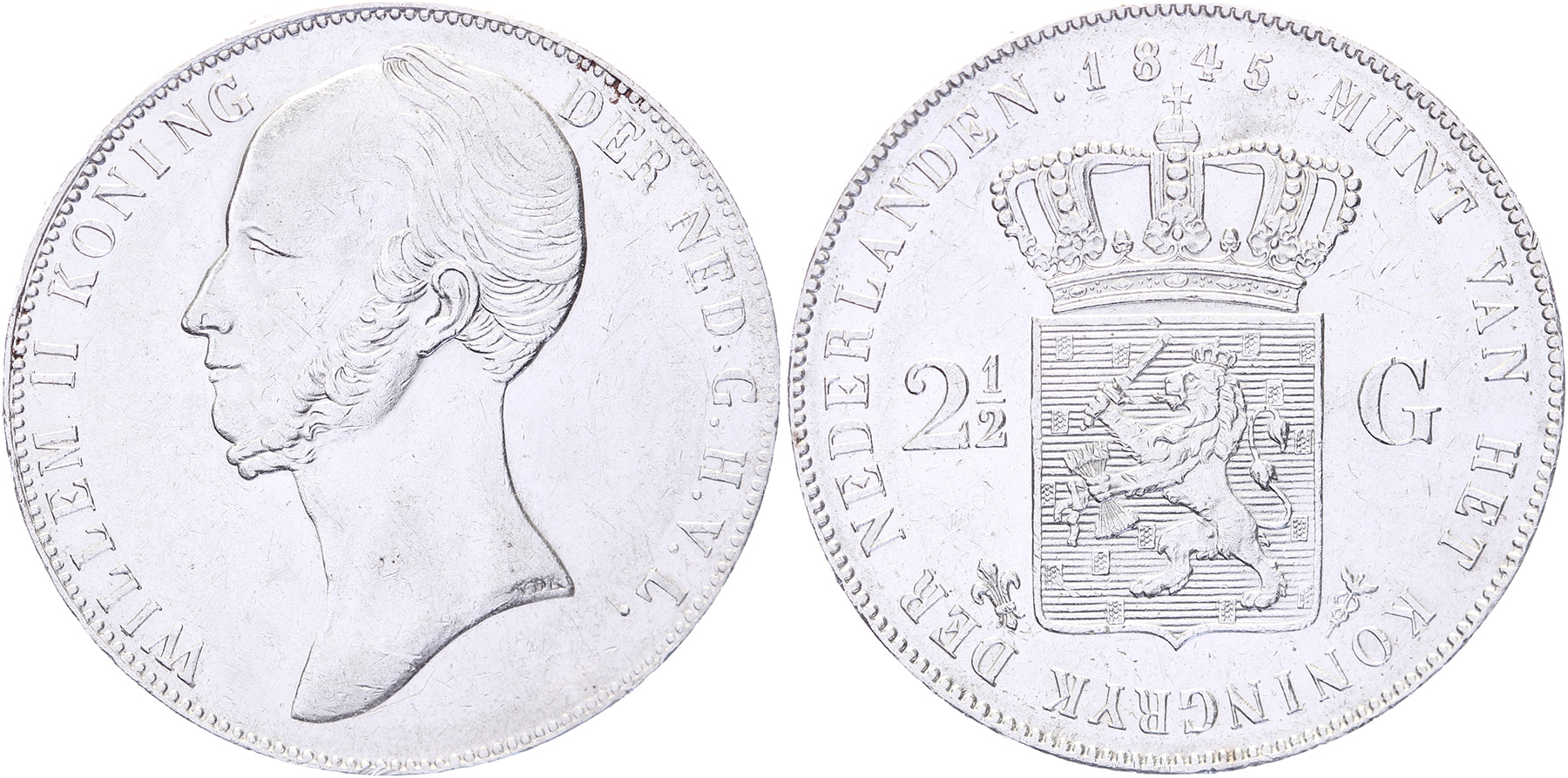 Lot (2) Rijksdaalder 1845 en 1846 mmt. lelie LSch. 387, 389; Sch. 510, 512 Zeer fraai / Ruim zfr.