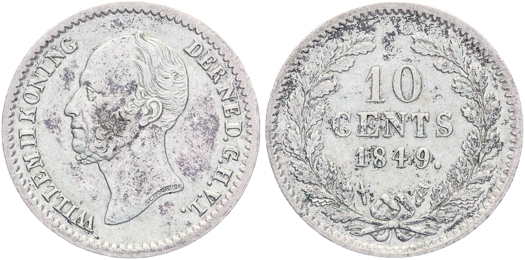 10 Cents 1849 mmt. zwaard LSch. 414; Sch. 535. Variant met schuine ‘9’, beetje vies Zeer fraai