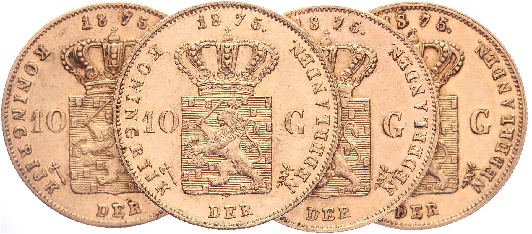 Lot (4) 10 Gulden 1875 mmt. bijl LSch. 430; Sch. 549 Zeer fraai