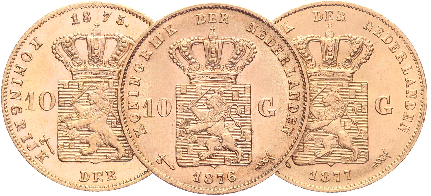 Lot (3) 10 Gulden 1875, 1876 en 1877 LSch. 430-432; Sch. 549-551 Zeer fraai en beter