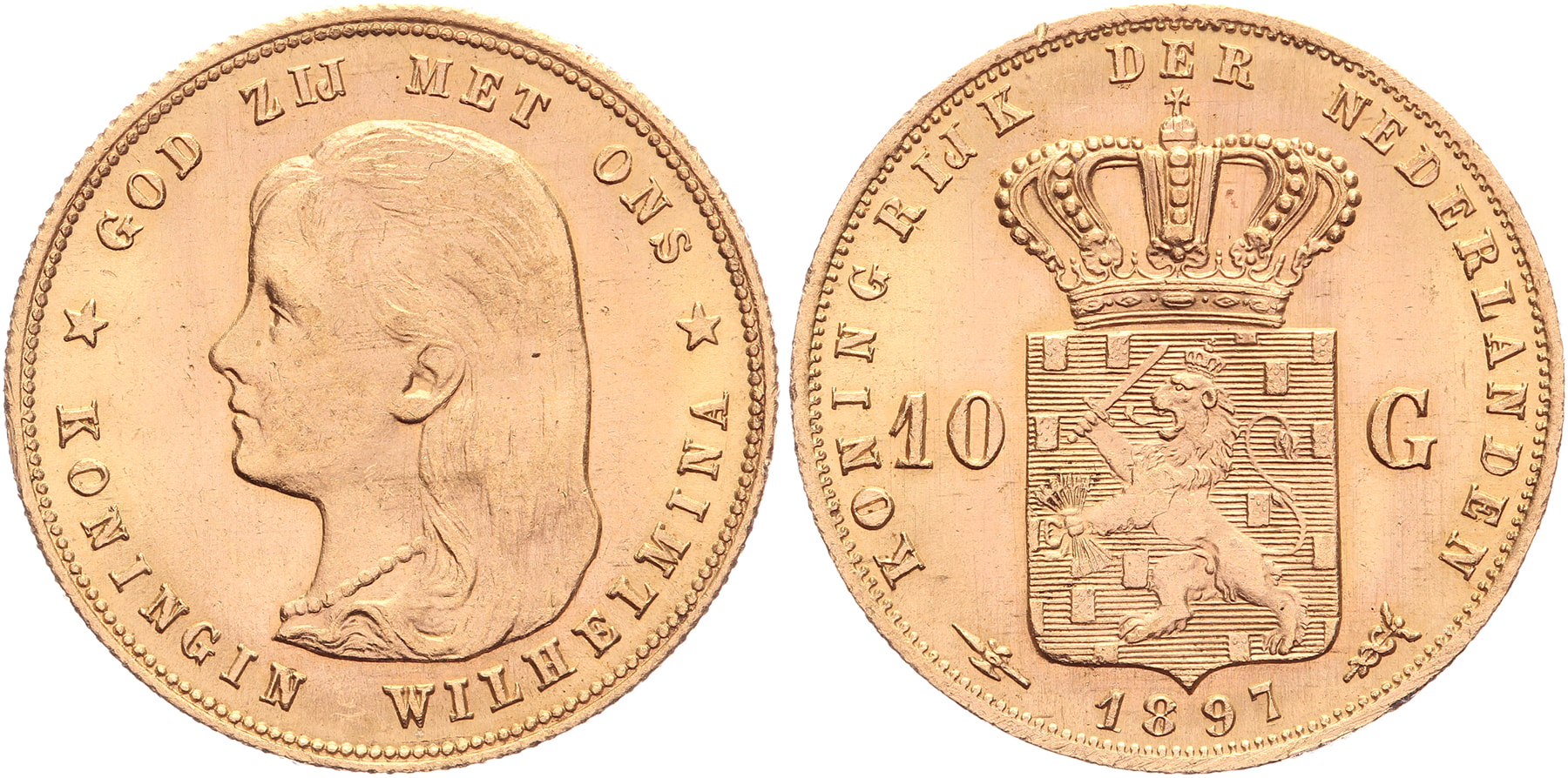 10 Gulden 1897 mmt. hellebaard L.Sch. 629; Sch. 742 Prachtig