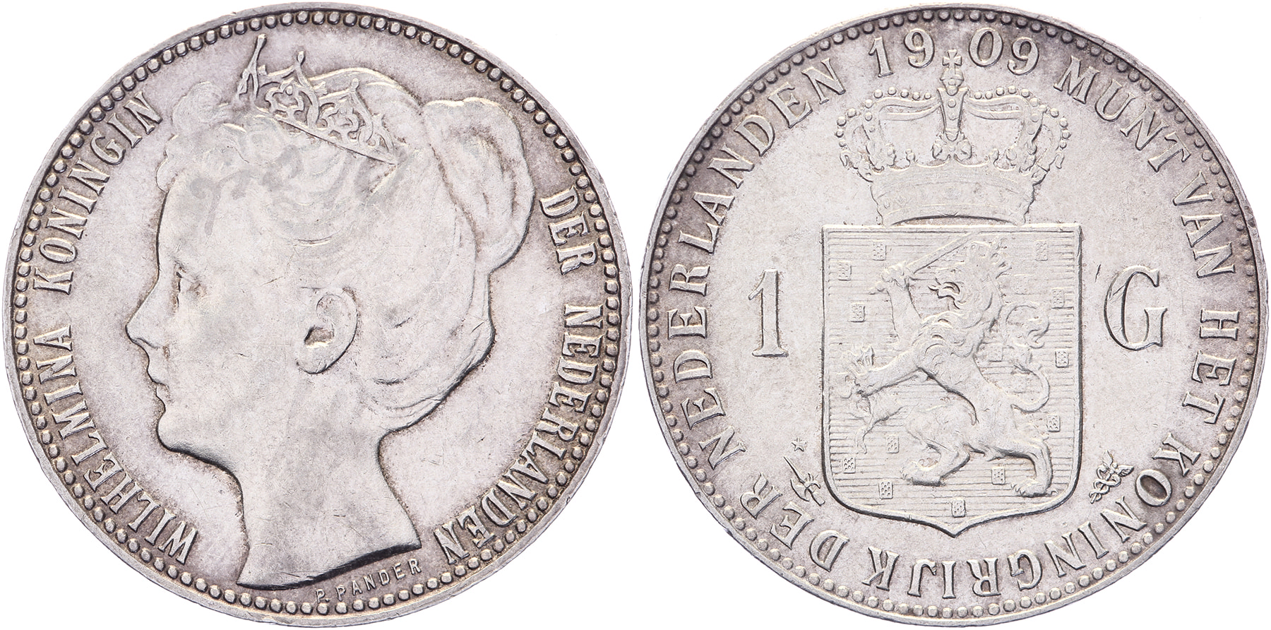 1 Gulden 1909 mmt. hellebaard met ster LSch. 694; Sch. 811 Ruim pr. / Bijna FDC ⁂