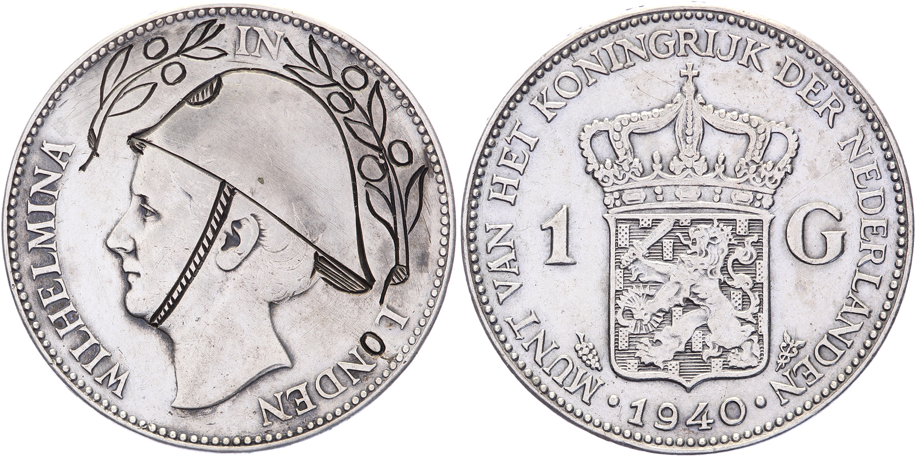 1 Gulden 1940 Wilhelmina in Londen. Huisvlijt! Prachtig ⁂